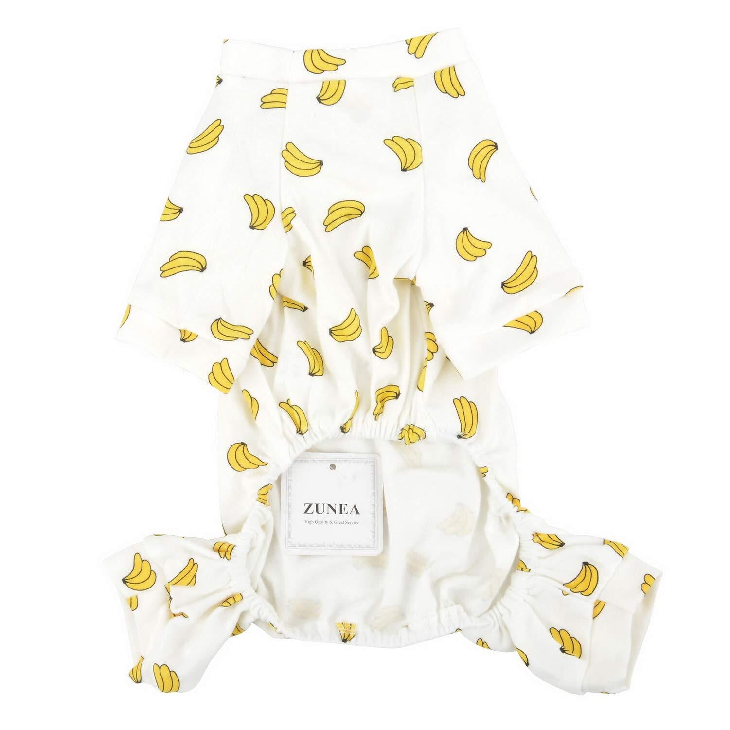 ZUNEA 犬 つなぎ パジャマ 春夏 ロンパース 小型犬 洋服 おしゃれ かわいい バナナ柄 ドッグウエア Tシャツ 部屋着 寝間着 抜け毛防止 ペット 犬の服 猫服 お散歩 お洒落 XXL