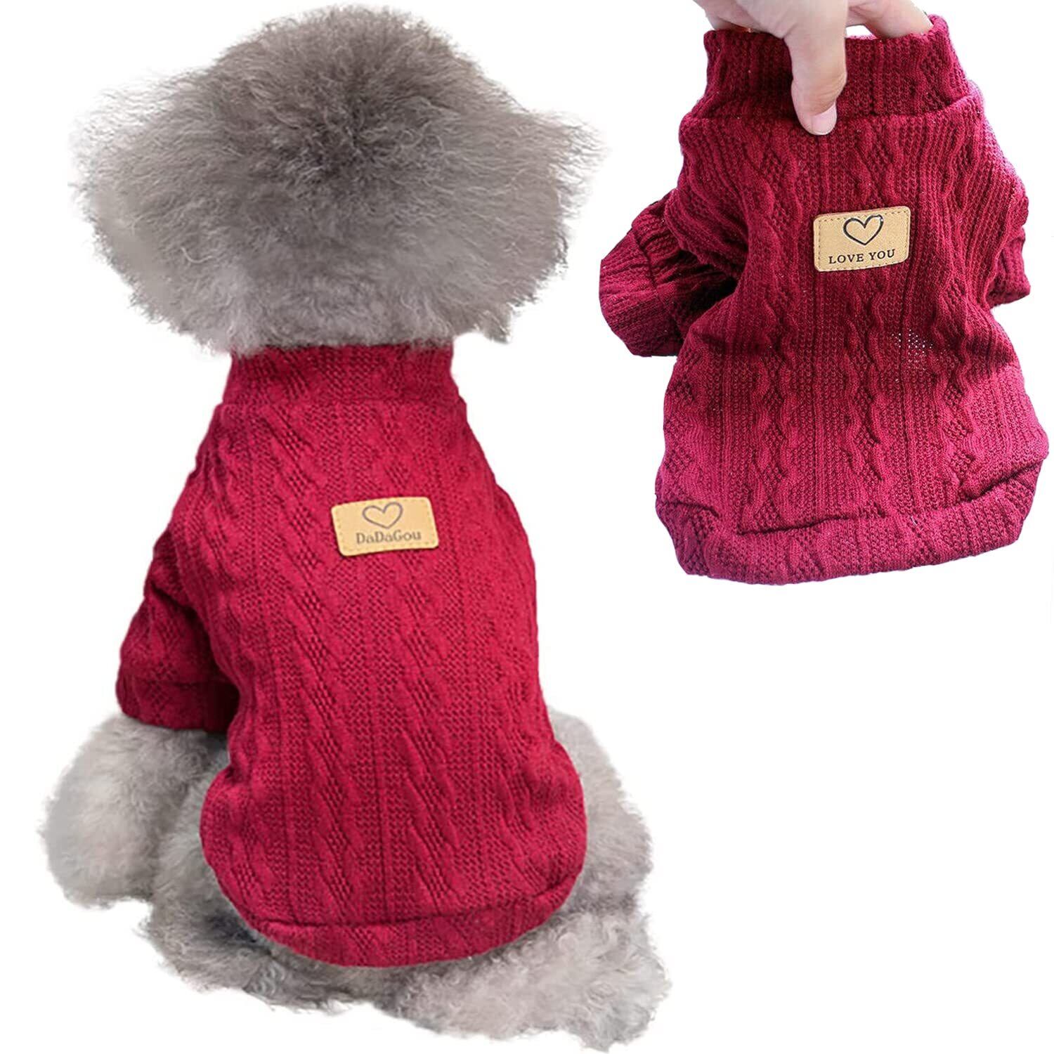 Tengcong 犬服 犬用 セーター 春 秋 冬 ニット セーター 犬用コスチューム 犬用セーター 犬服 セーター 洋服 猫 ドッグウェア 防寒着 暖かい 可愛い おしゃれ 小型犬 中型犬 (L, ワインレッド)