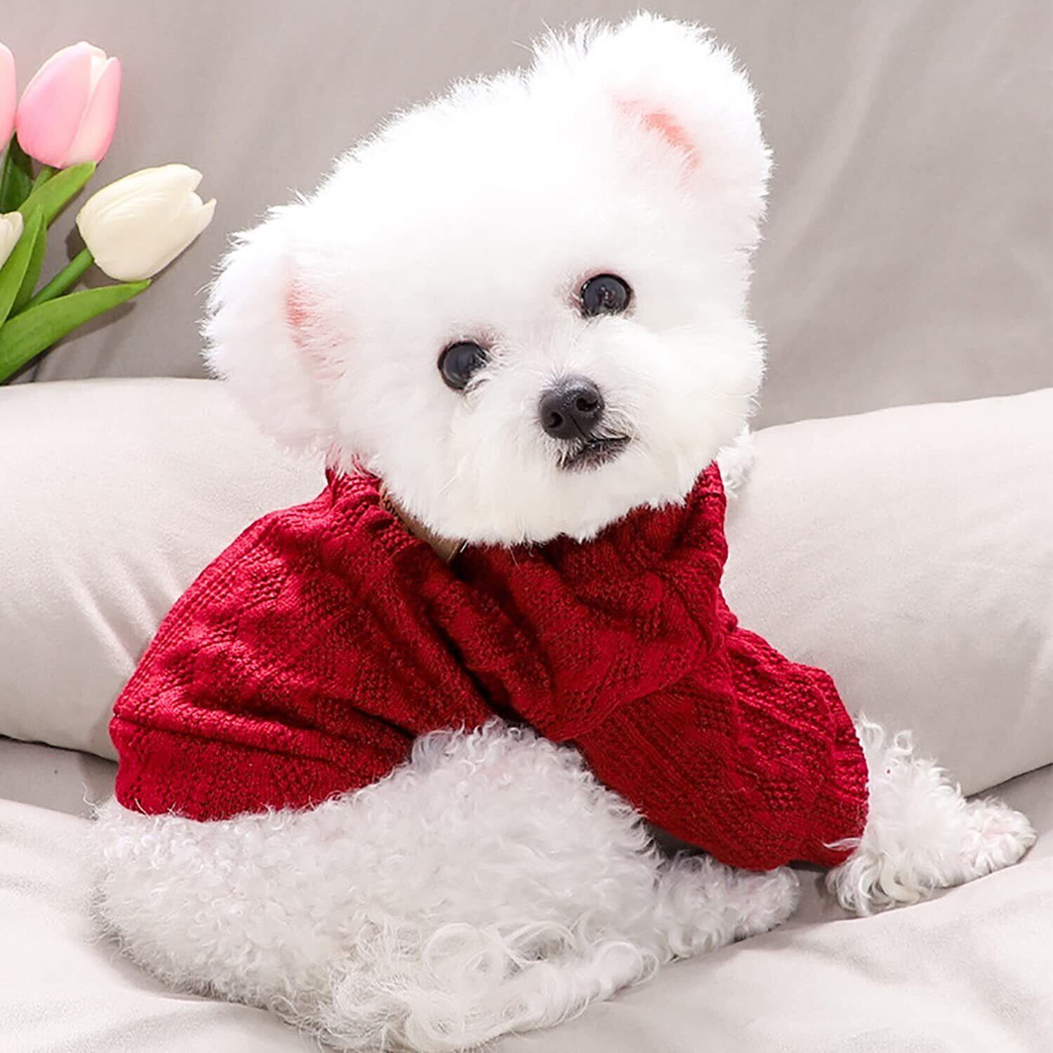 【人気商品】Tengcong 犬服 犬用 セーター 春 秋 冬 ニット セーター 犬用コスチューム 犬用セーター 犬服 セーター 洋服 猫 ドッグウェア 防寒着 暖かい 可愛い おしゃれ 小型犬 中型犬 (L, ワインレッド) | wakuwakuland