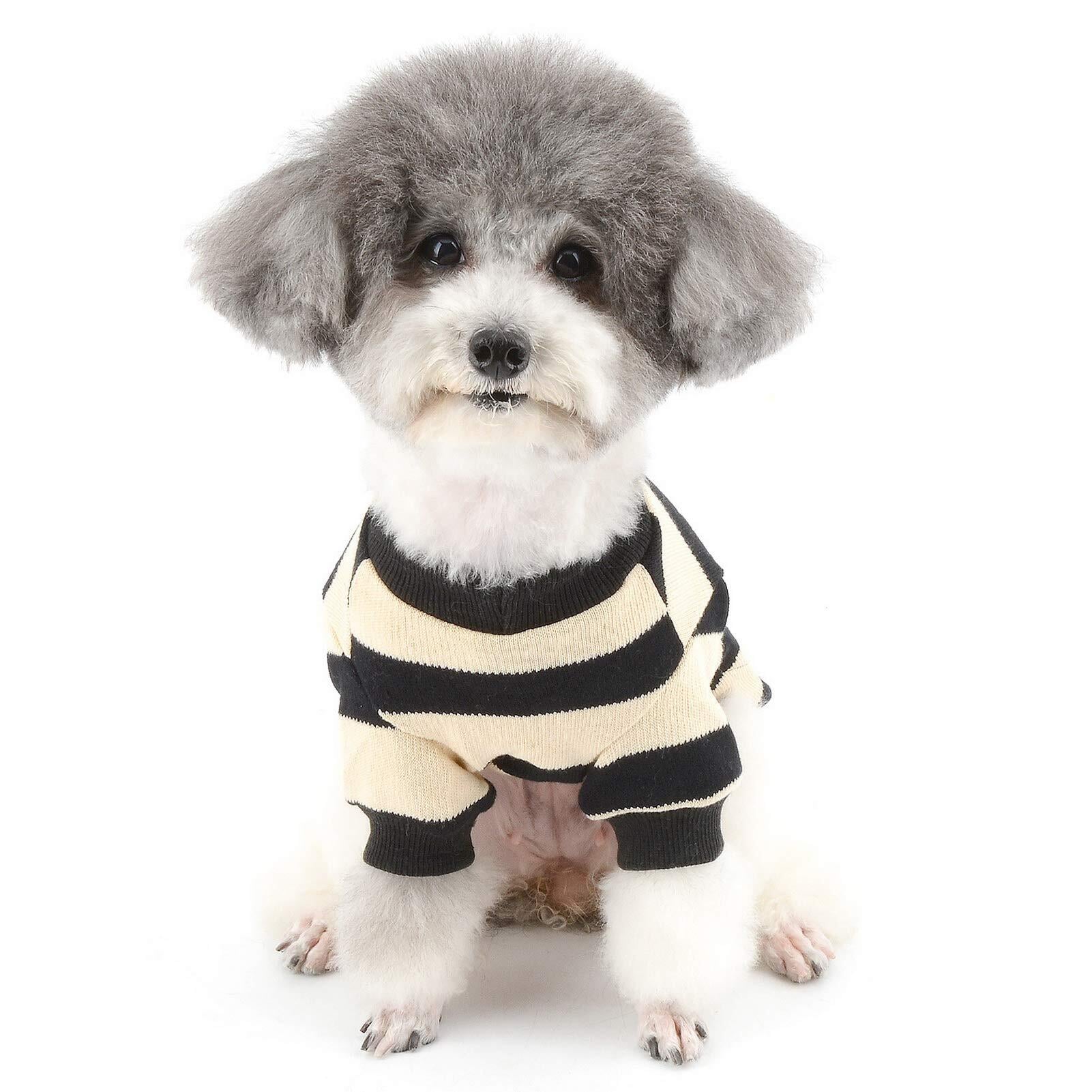 ZUNEA 犬服 秋冬 ニット セーター 小型犬 おしゃれ かわいい ストライプ コート ジャケット 暖かい 防寒 綿服 冬服 あたたかい tシャツ ペット 猫用 トイプードル チワワ ドッグウェア 洋服 お散歩 ブラック M