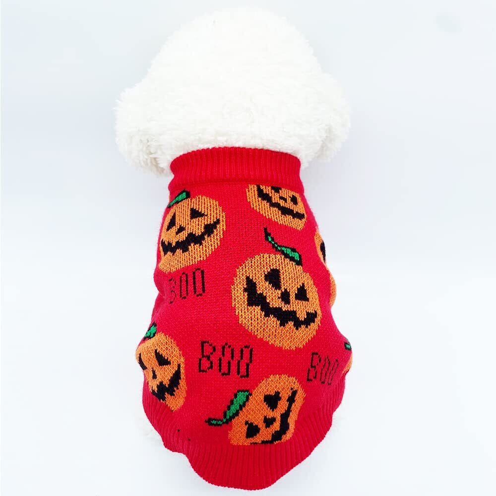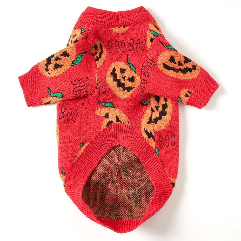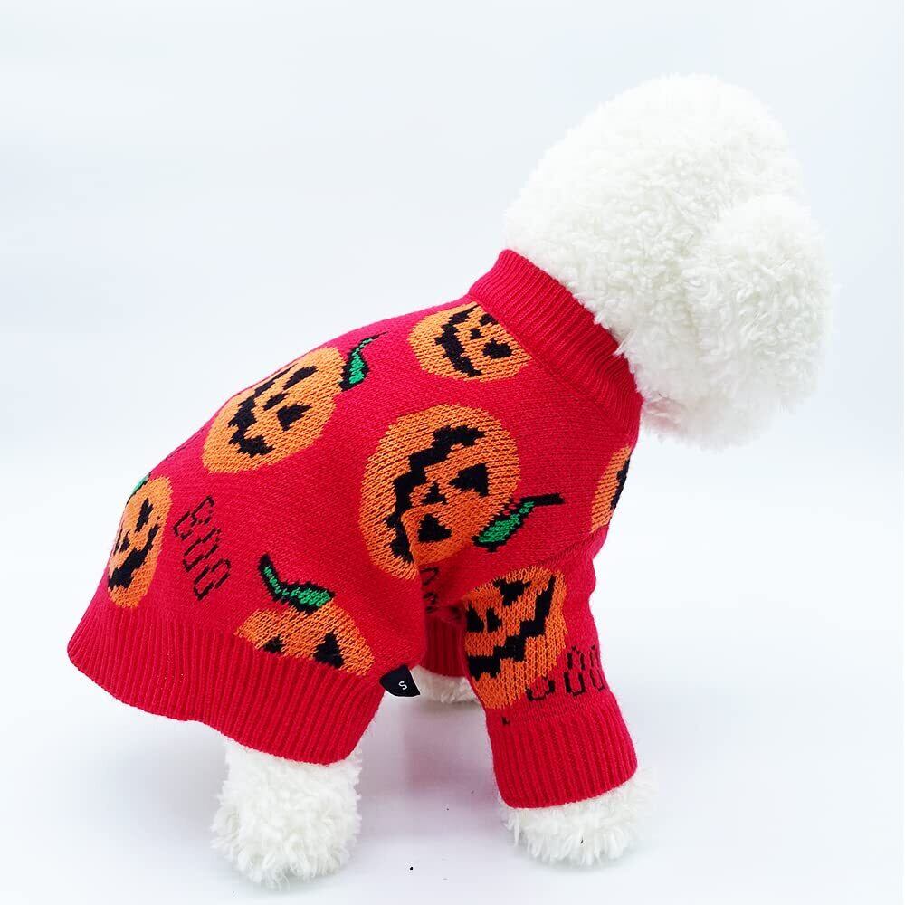 YOASONEK 犬 服 ハロウィーンのカボチャ猫犬のセーター 秋冬 猫服 ドッグウェア ニットセーター 犬の服 防寒 暖かい 可愛い おしゃれ 和風 小型犬 中型犬 散歩着 記念撮影 お出かけ 部屋着 ペット服 (L, Red)