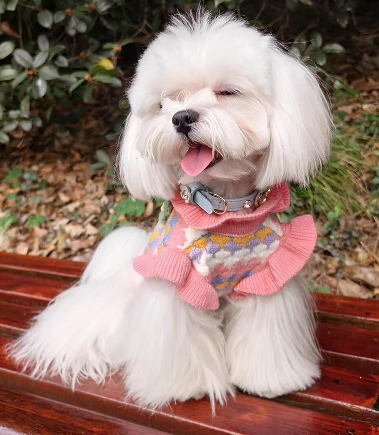 襟元はコンパクトなデザインで、ペットを全面的に包むことができ、犬や子猫が寒さを感じず、温かく快適に過ごすことができます。服はすべてコットンニットで作られていて、いろいろな模様が描かれていて可愛らしく見えます。