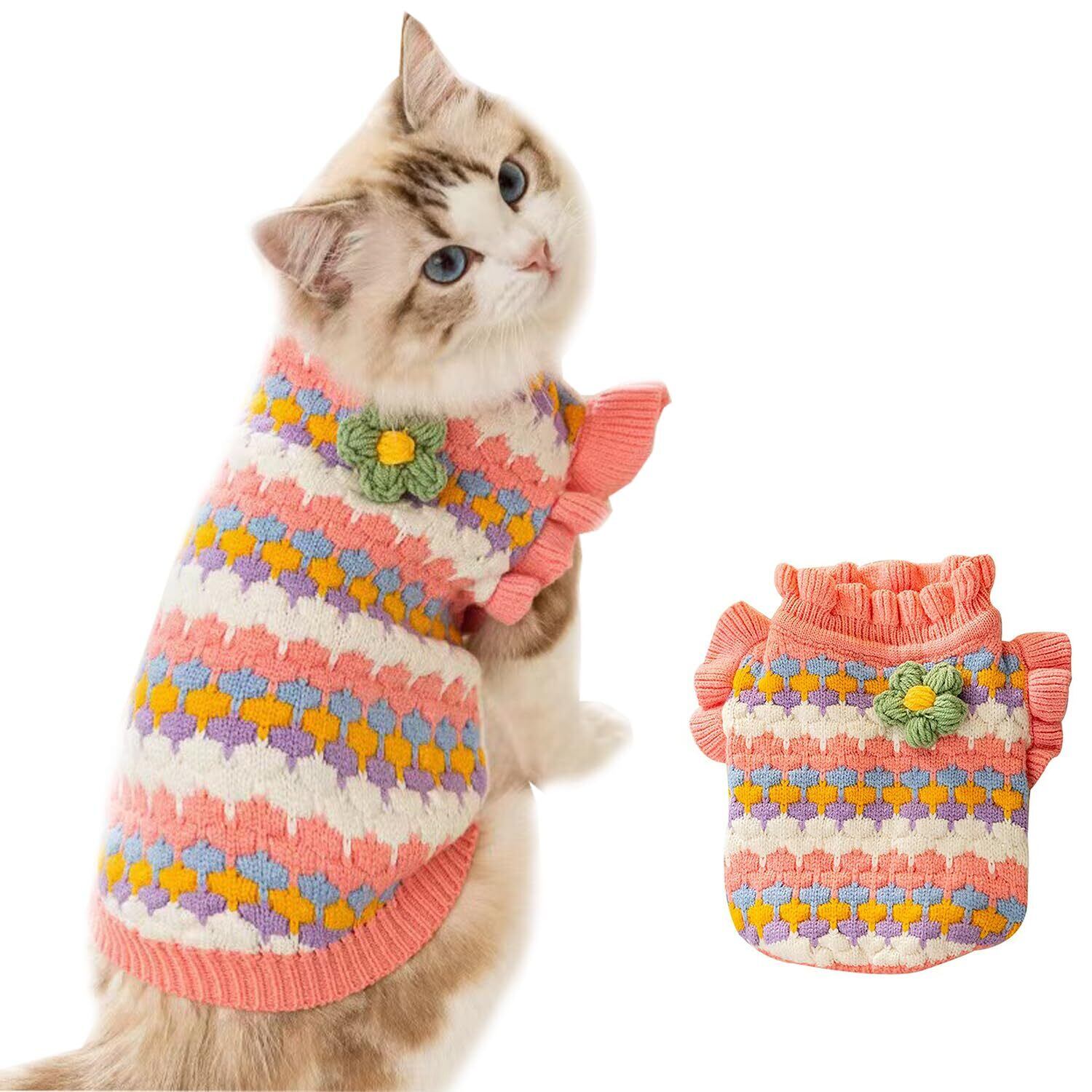 WEILFYONK 犬用服装犬用セーター小型犬服猫服ペットの保温服秋冬防寒服ニット柔らか厚手犬の服おしゃれでかわいいペット服犬服 (ピンク, M)