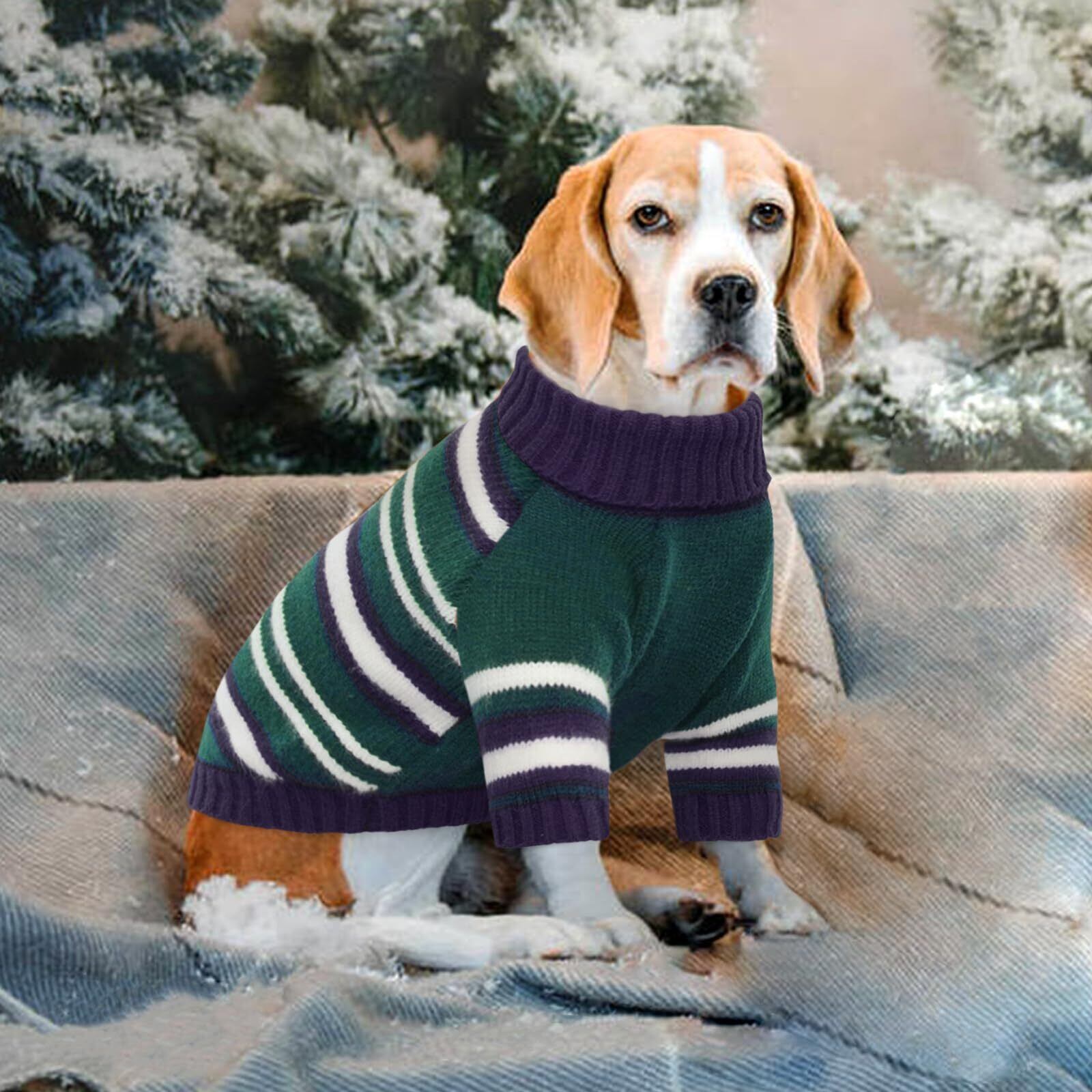 Kuoser犬用セーター 防寒服 秋冬服 ストライプ柄 タートルネック 肌触り良い ソフト 快適 犬の保温服 クリスマス ハロウィン 新年 誕生日 グリーンS