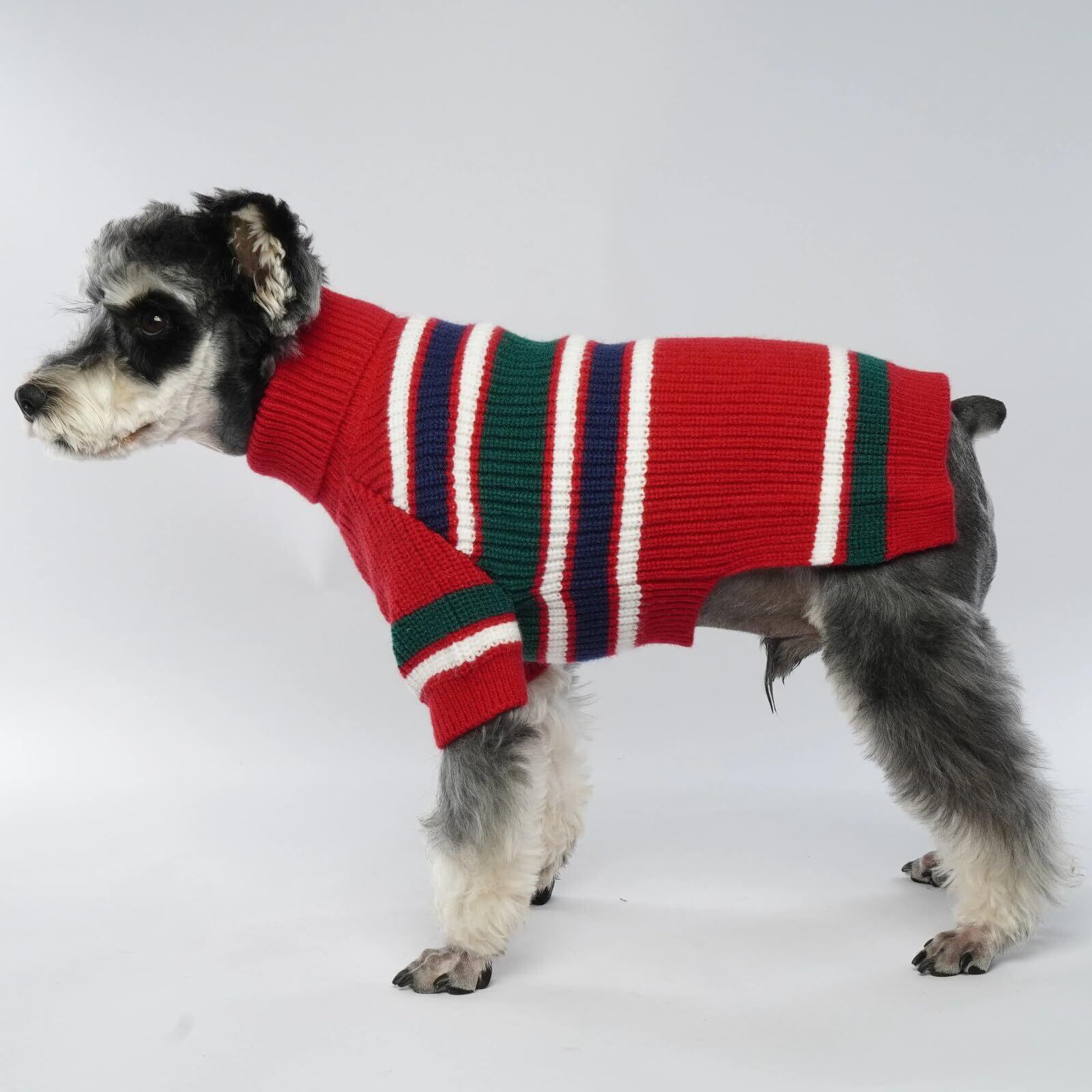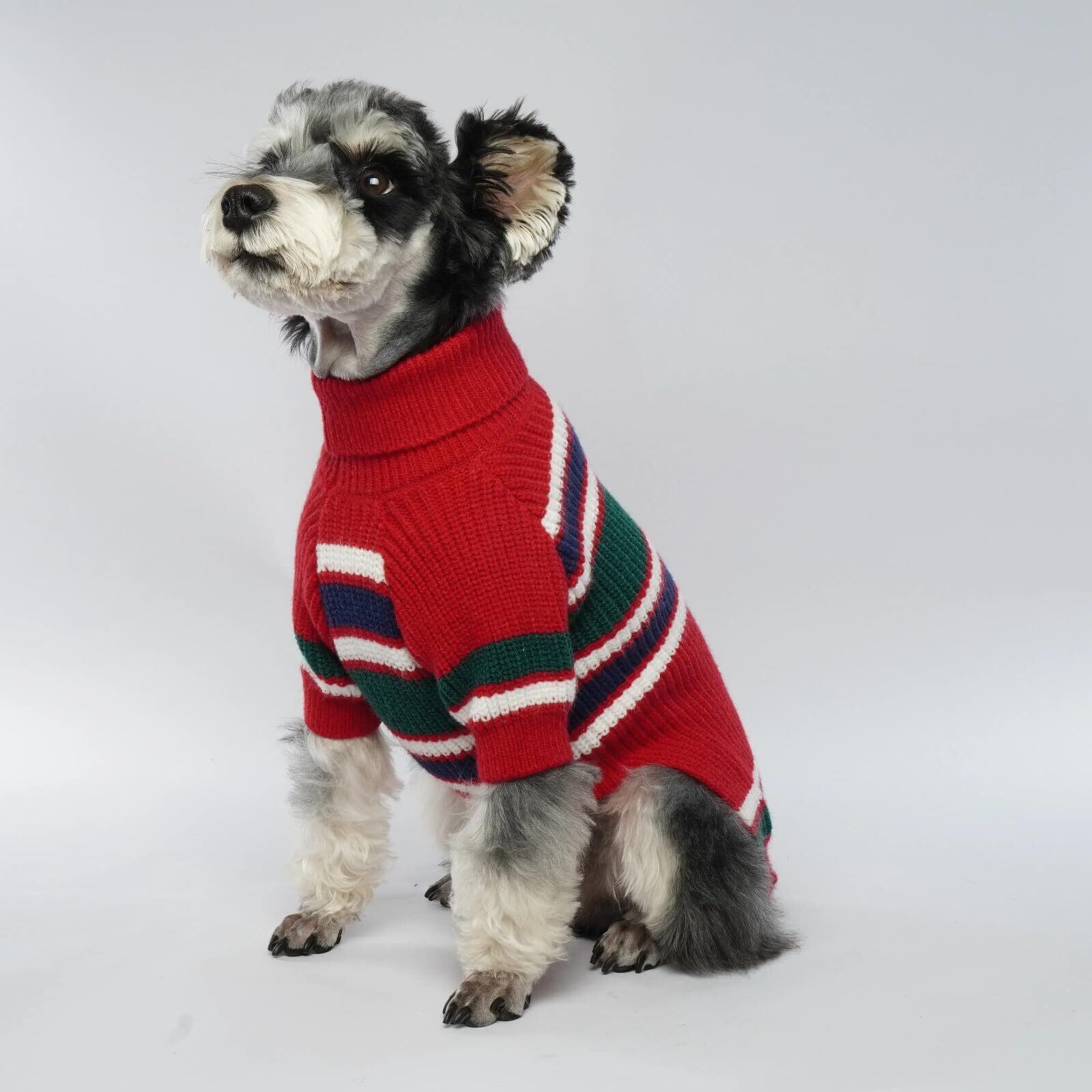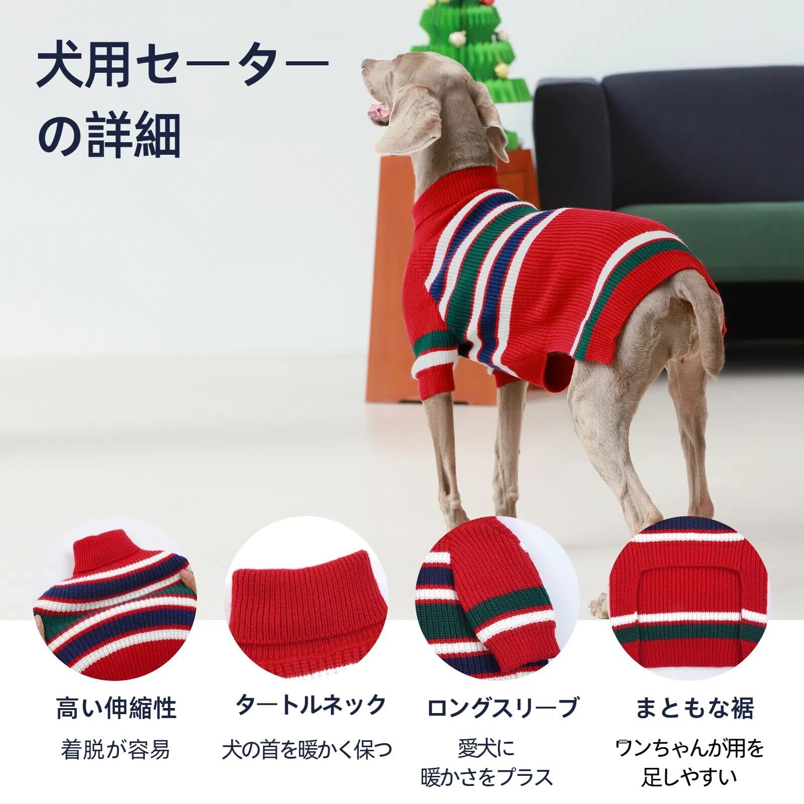 【2022最新】IECOii 犬 服 冬 ストライプ 犬用セーター 伸縮性 犬服 秋冬 ハイカラー 柔らかい 犬 服 防寒着 お出かけ 部屋着 誕生日 聖夜 新年 トイプードル 服 チワワ 服 フレブル 服 中型犬 レッド XL | wakuwakuland