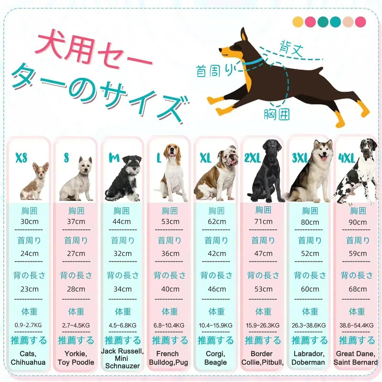 小型犬、中型犬、大型犬に最適:XS、S、M、L、XL、2XL6サイズは、チワワ、ヨーキー、プードル、ダックスフンド、柴犬、フレンチブルドッグ、コーギー、パグ、シーズー、ジャックラッセルテリア、リンタイル、ボクサー、ゴールデンレトリバー、ラブラドールなど、ほとんどすべての犬種に適しています。ただし、犬種によって体のプロポーションが異なるので、防寒着を購入する前に、愛犬の胸と背中の長さを正確に測ることが大切です