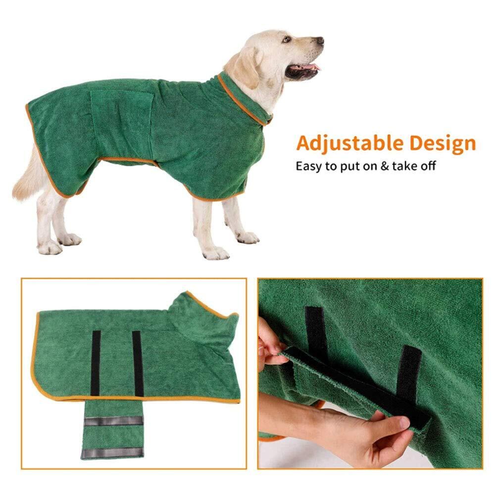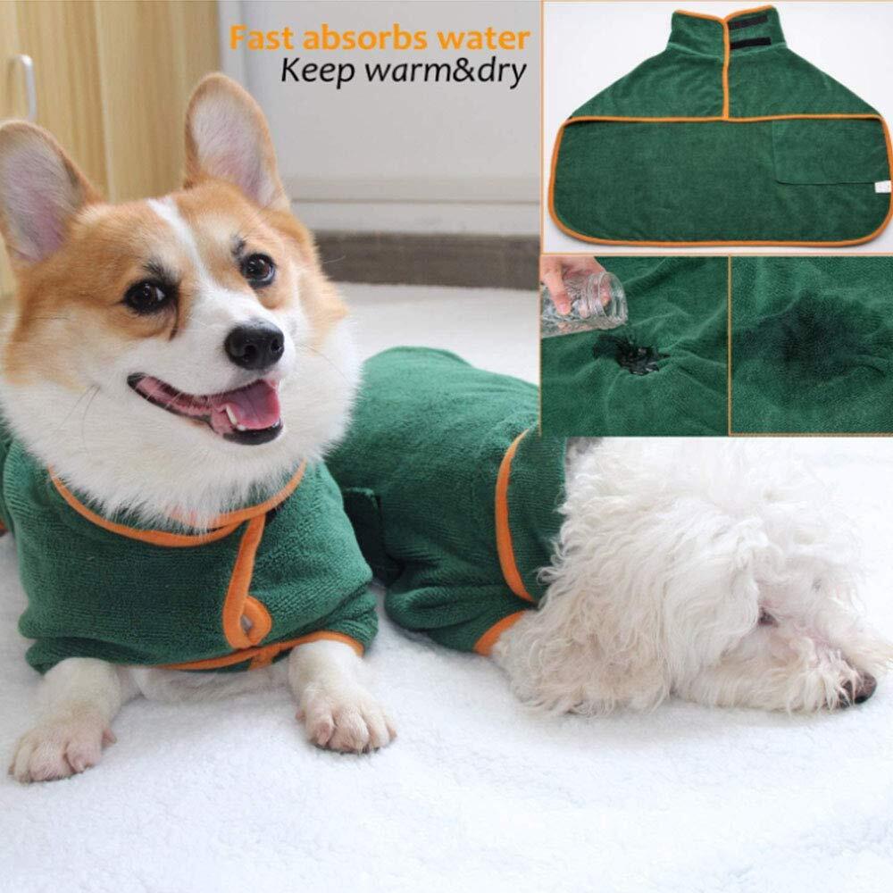 犬のバスローブタオル-犬の猫のバスタオルジャケットフリースコート犬の乾燥ローブマイクロファイバー調節可能な小型犬の乾燥コートバスと水泳用 (M)