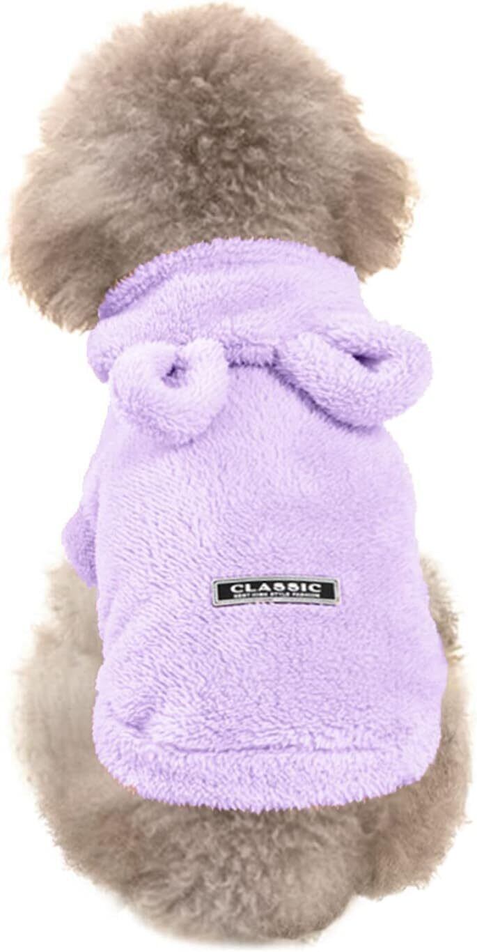 Souher 犬の服 フード付き 厚手 パーカー かわいい 犬服 冬用 ドッグウェア ペット服 ふわふわ 暖かい裏起毛 小型犬 中型犬 ウサギ形 犬猫洋服 防寒 コート わんこ用 仮装 (パープル/L)