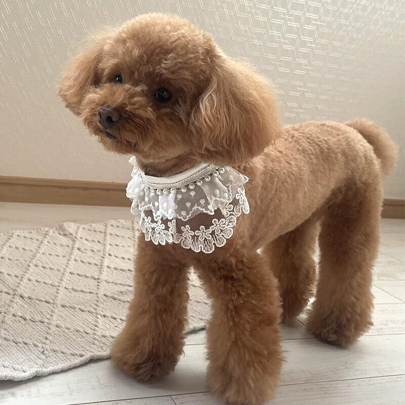 ペット用 よがれかけ ペット用品 犬用 猫用 小型犬 中型犬 付け襟 首飾り 可愛い フリル おしゃれ フォーマル 調整可能 リボン付き 小中型犬 誕生日 結婚式 猫 スカーフ 首輪 ペット 犬 かわいい レース プリンセス アクセサリー ドット 軽量 リボン つけ襟 首飾り 調節可能 お散歩 ペット用品 猫用品 ホワイト (S)