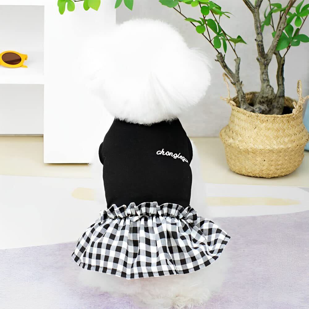 【可愛い】単色のTシャツ、とチェック柄の裾、おしゃれ なワンピース設計して、毎日一緒に生活する愛犬が自宅でも散歩中でも、外出先でもこんなオシャレな服を着せると、注目を浴びるアイテムに間違いなし。