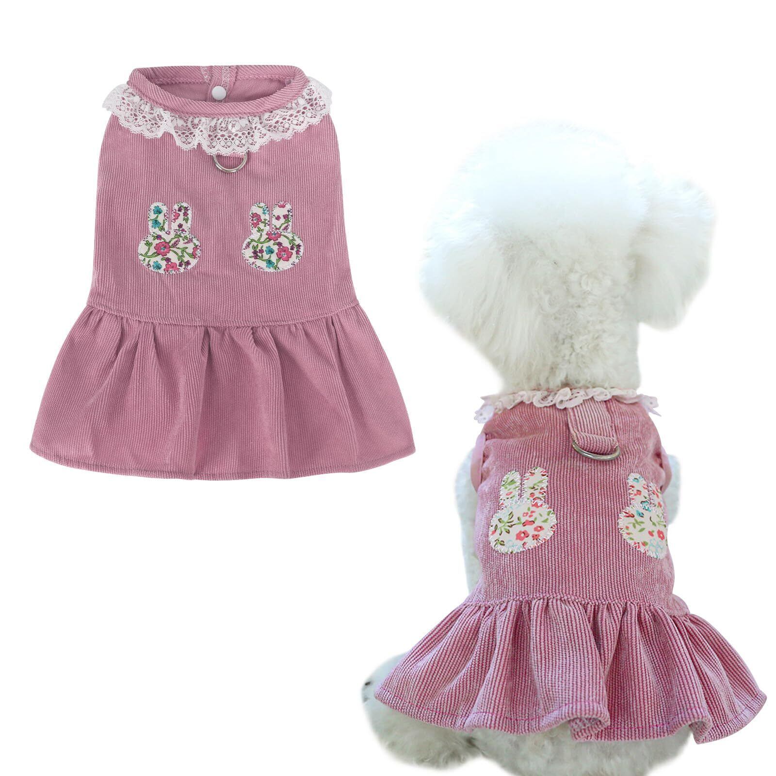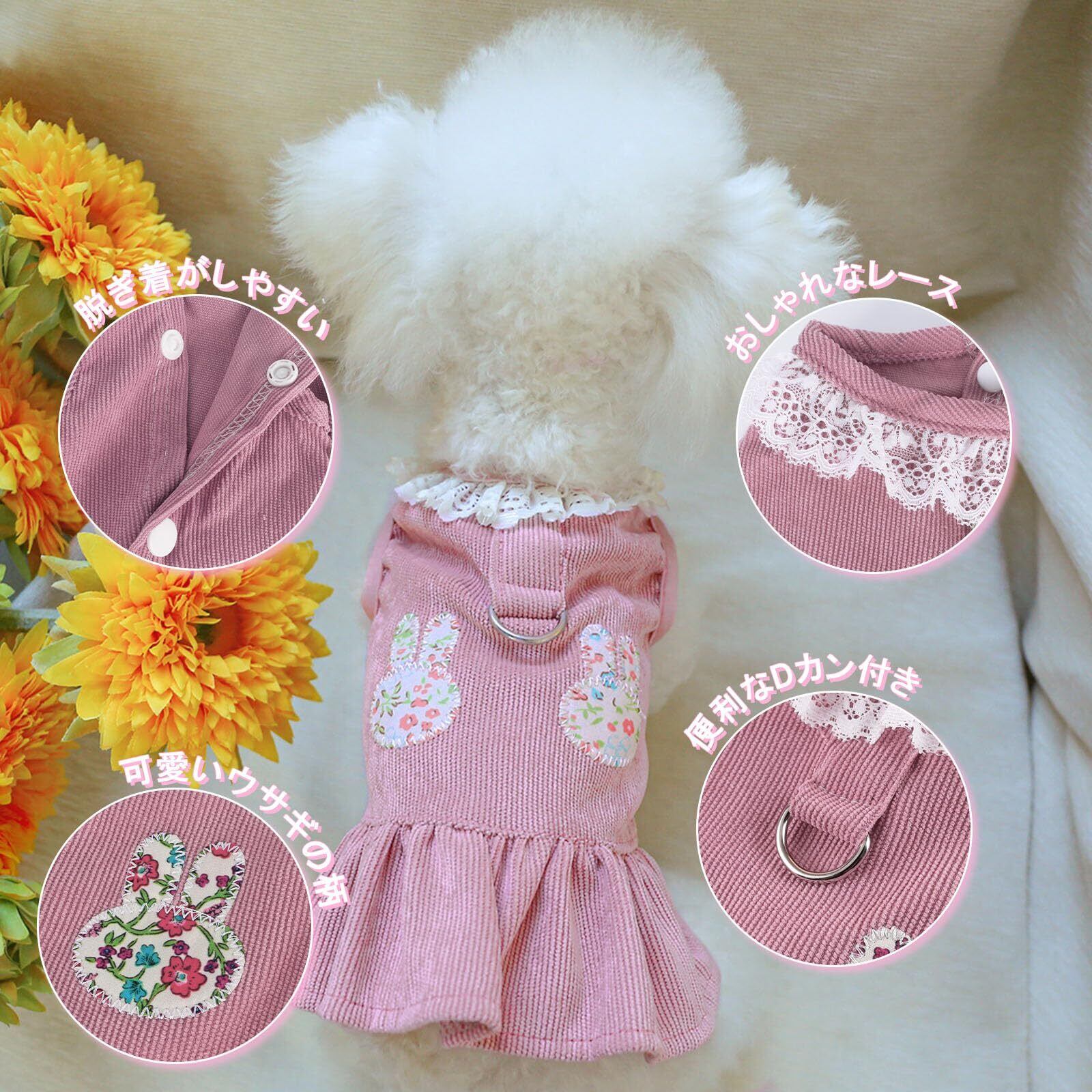 【数量限定】Jimjis 犬服 春夏 犬 ドレス 犬の服 ペット服小型犬 お姫様 ウサギ パターン 犬 洋服 犬ワンピース Dカン付き 散歩 お出かけ 日焼け予防 抜け毛対策 (ピンク, L) | wakuwakuland