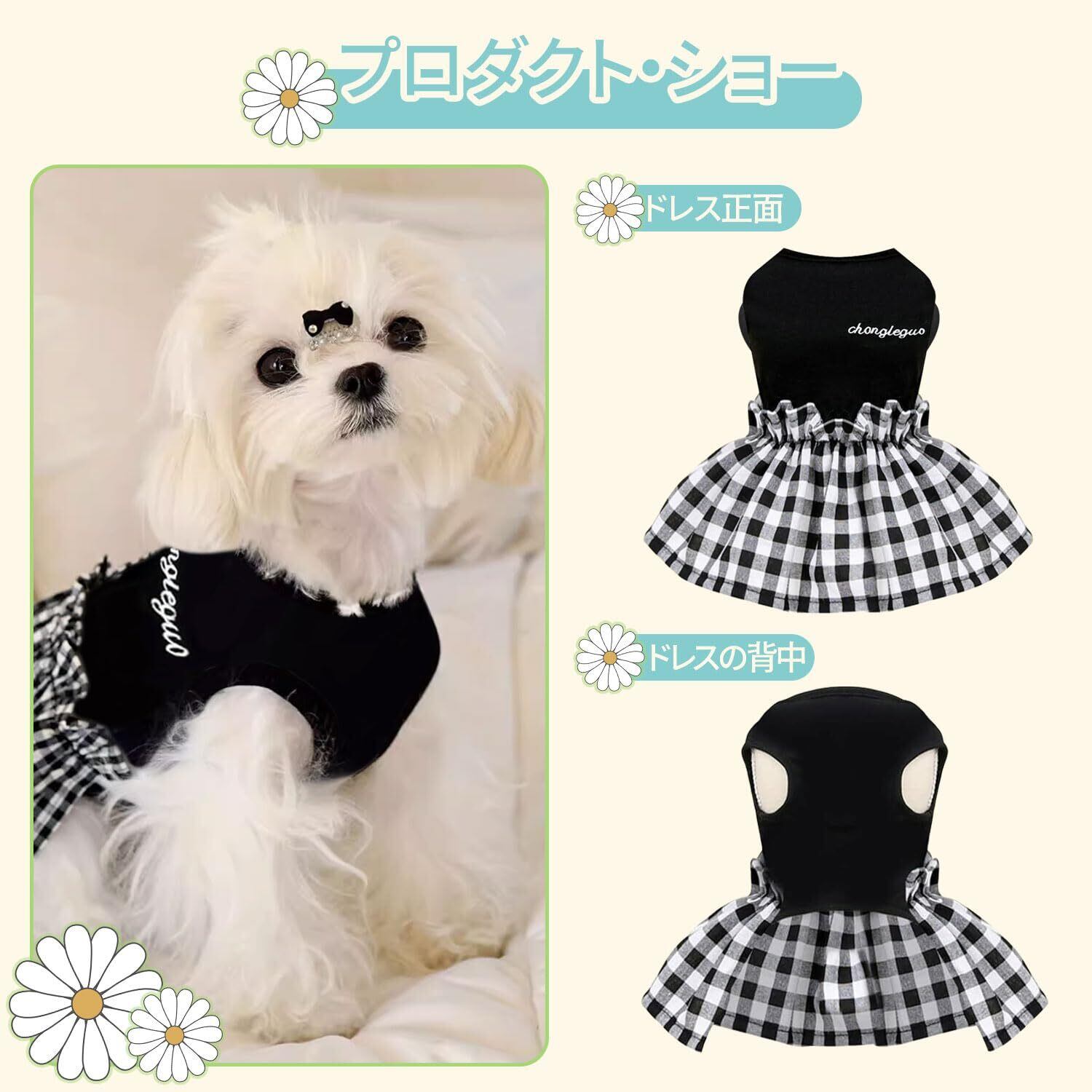 【2022最新】犬 服 ペット服 ドレス ペット服 猫 犬服 チェック柄 リボン ノースリーブ 春 夏 秋 犬服 プリンセス レース ドレス スカート かわいい 人気 ファッション 小型犬 中型犬 猫 (ブラック, S) | wakuwakuland