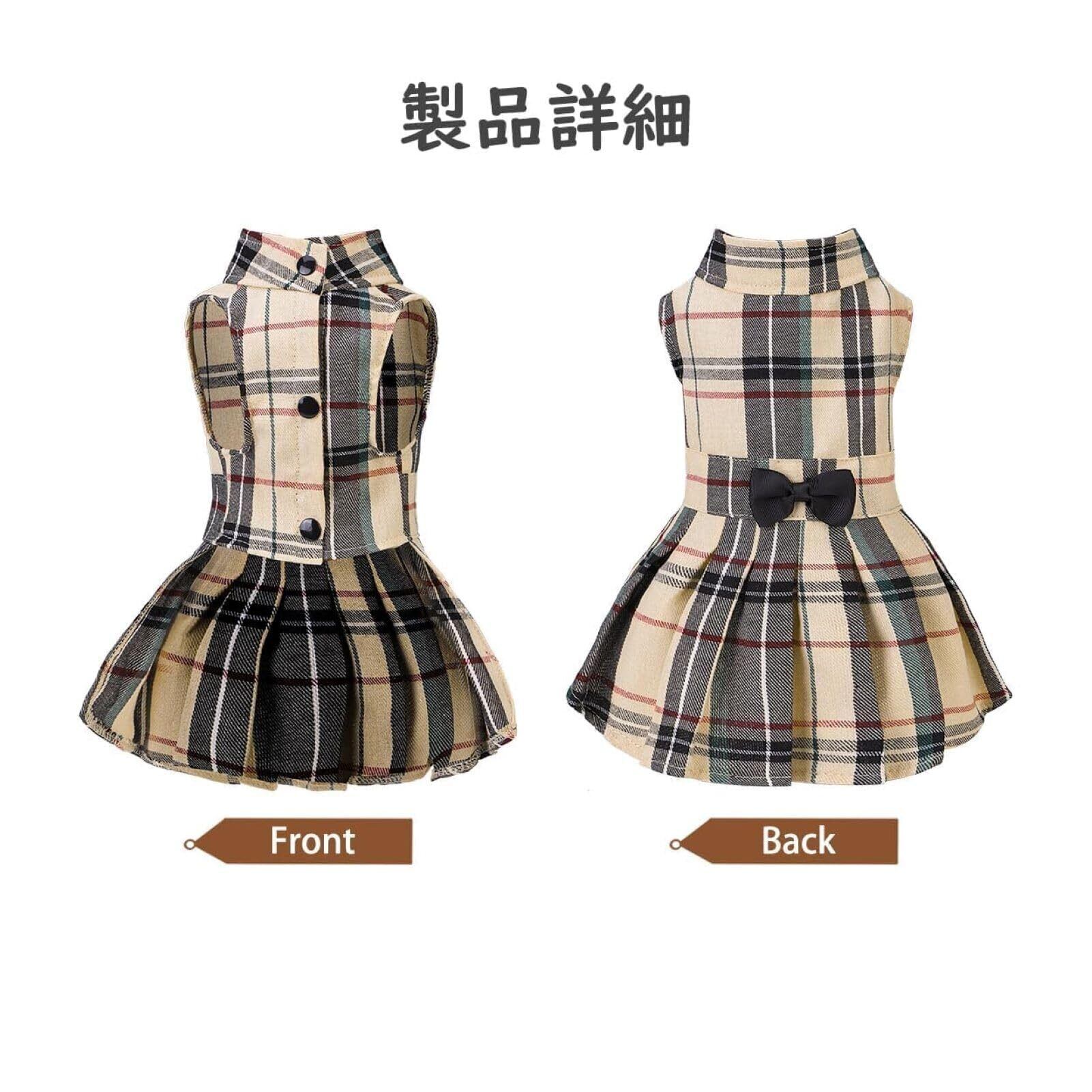 【在庫処分】BINGPET 犬 服 ワンピース 犬の服 ペット服 洋服 チェック柄 春夏秋 トイプードル 服 可愛い 女の子 おしゃれ ドッグウェア ドレス スカート ペット用 袖なし お散歩 リボン付き 超小型犬 小型犬 中型犬 猫 (チェック, M) | wakuwakuland