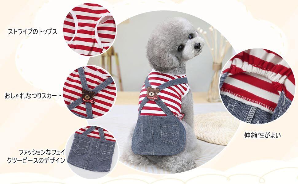 『洗濯可、長期間使用可』 ペットも汗をかくことがあり、犬などは気をつけていても散歩中に汚れたりします。この犬ワンピースは洗濯しても破れたりほつれたりしないペット服で、快適に長期間使用することができます。