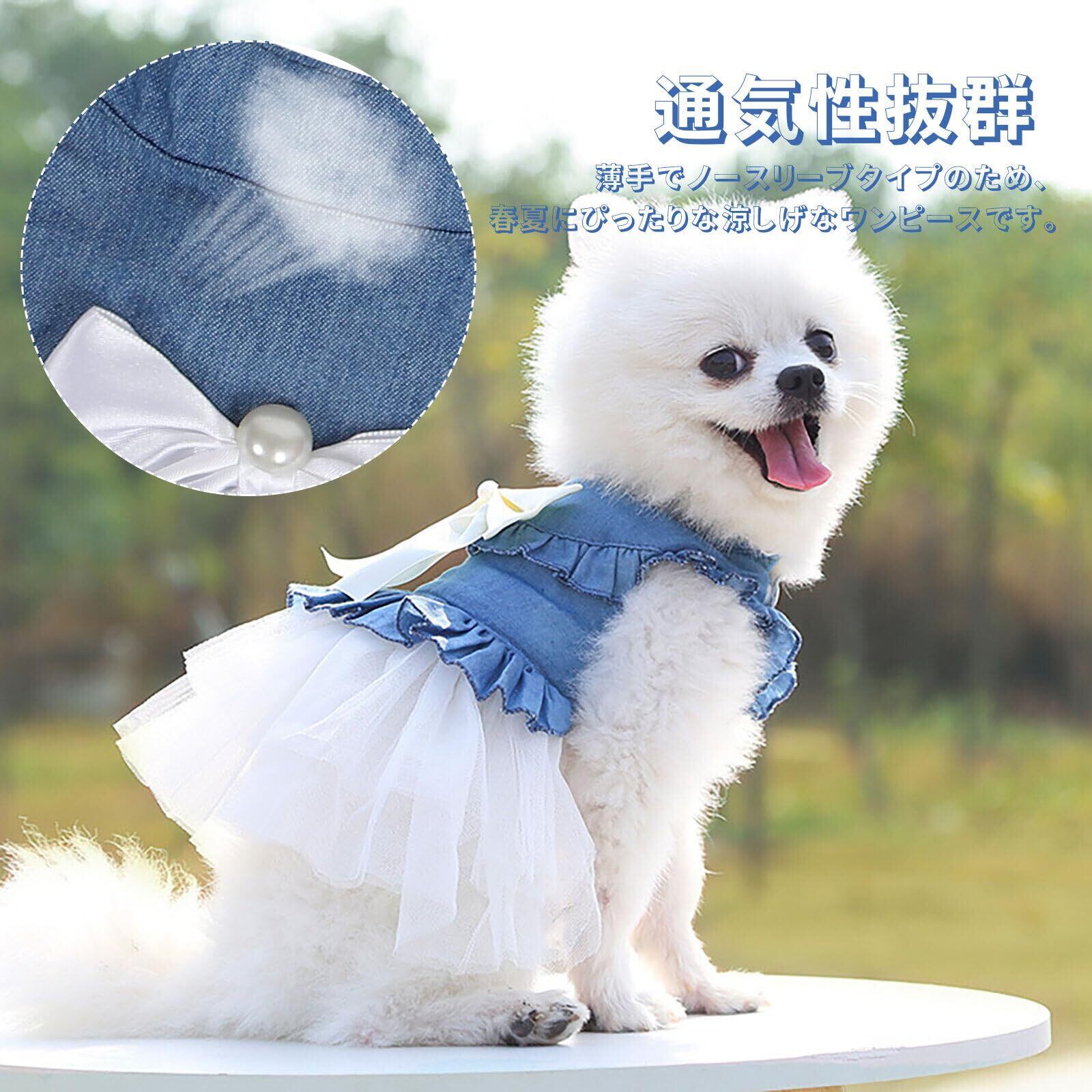 Jimjis 犬服 ワンピース 春夏 通気 お姫様 ドレス スカート 袖なし 薄手 軽量 小型犬 猫 ペット服 犬の服 猫の服 小型犬 中型犬 洋服 脱毛保護 (ホワイト, M)