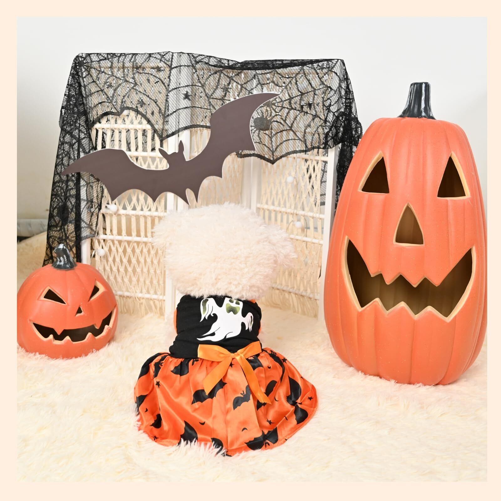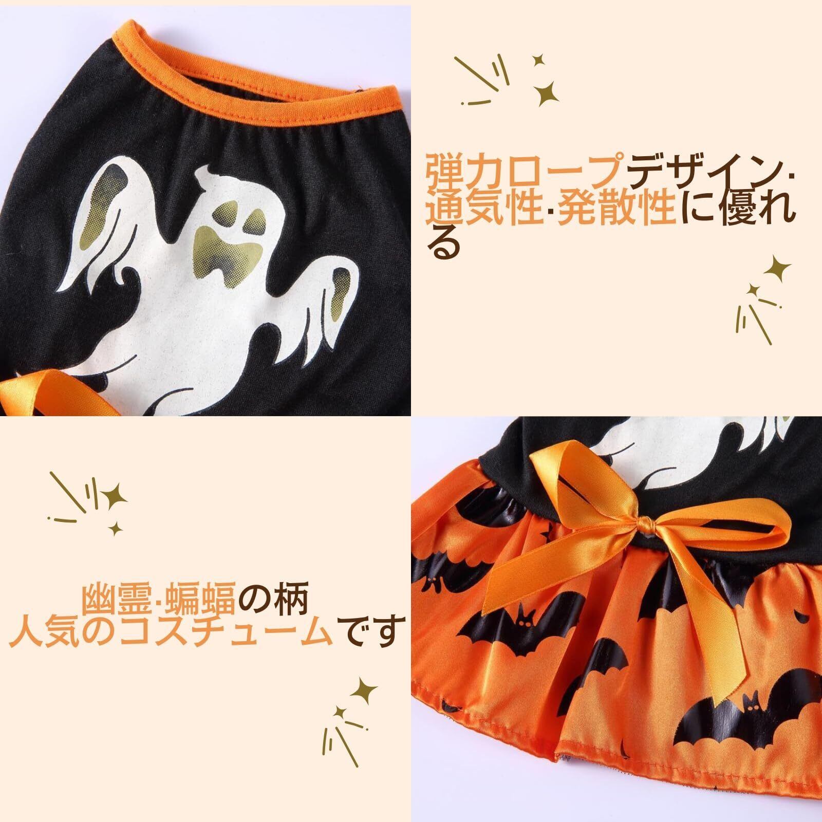■ハロウィン仕様のキュートなペット服です!背中には幽霊のお顔とコウモリをプリントデザイン、着るだけで、かわいいお姫様に変身!ハロウィンのコスチュームにもピッタリのペットウェア。 着るだけでSNS映え間違いなし、ハロウィンイベントに是非着せてあげてください