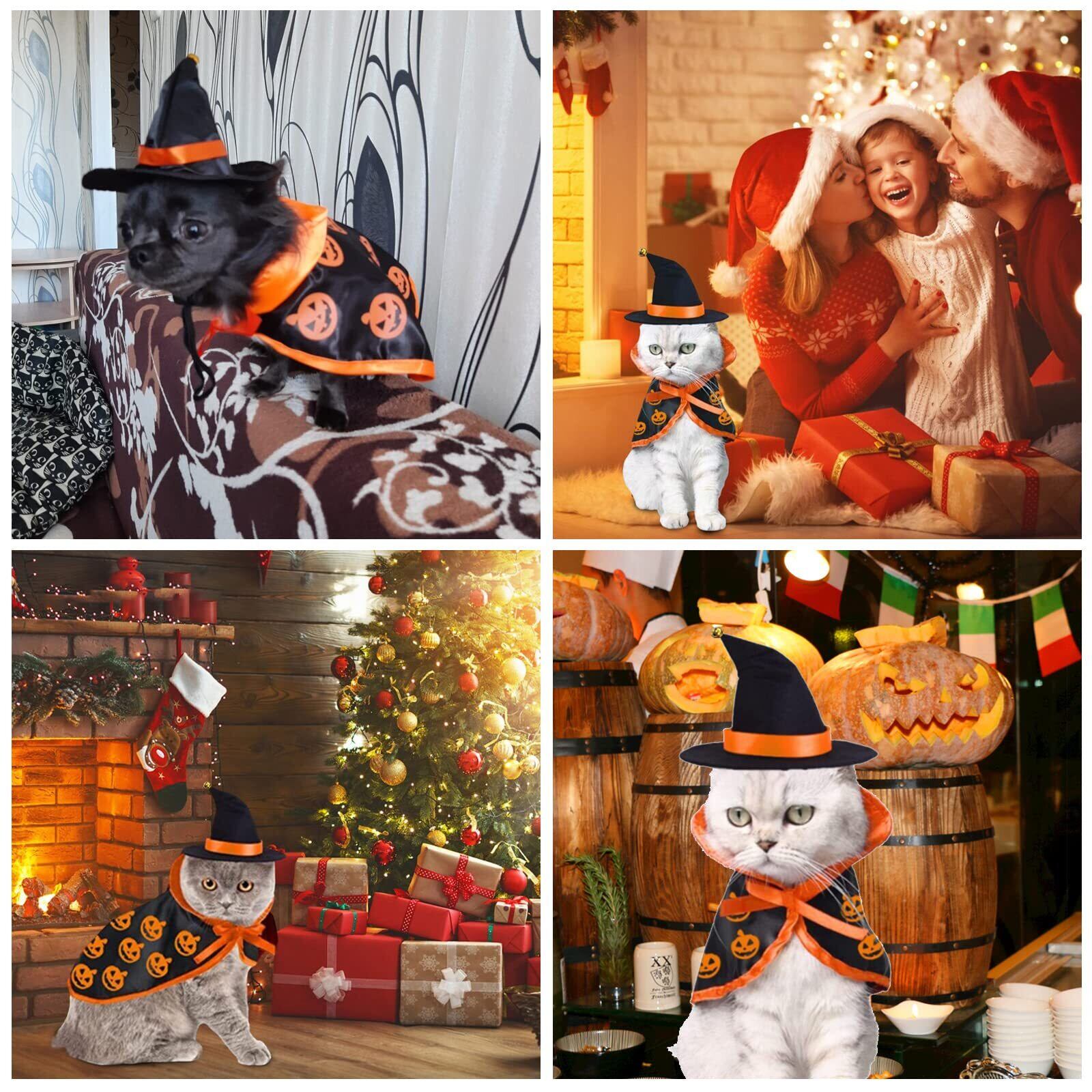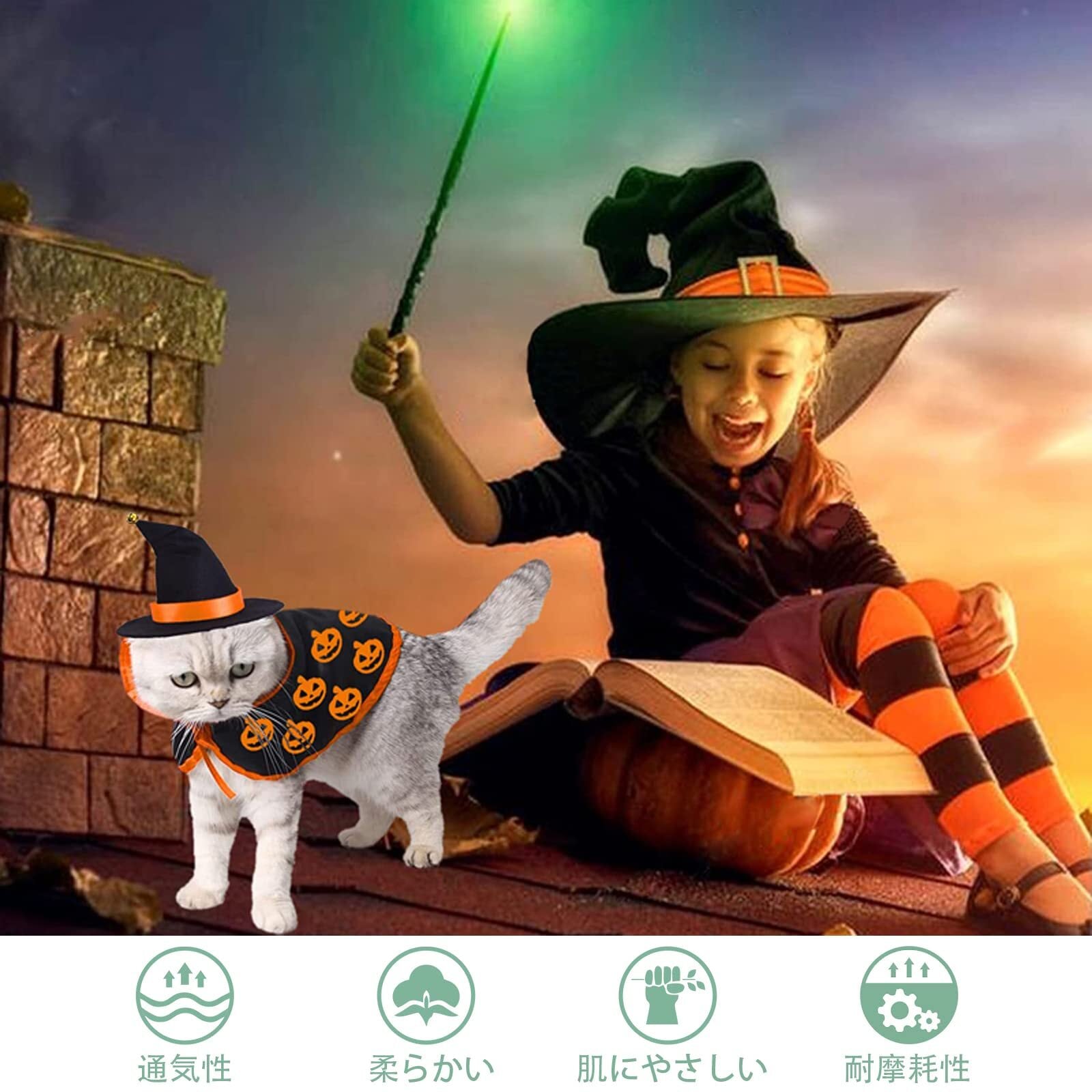 ハロウィン ペット服 コスチューム コスプレ 犬 猫用 ハロウィン 帽子 マント ペット 仮装 魔女帽子 かぶりもの ベル付き かぼちゃ ケープ 黒 悪魔 変身服 クリスマス 写真撮影 2個セット (ブラック+オレンジ)