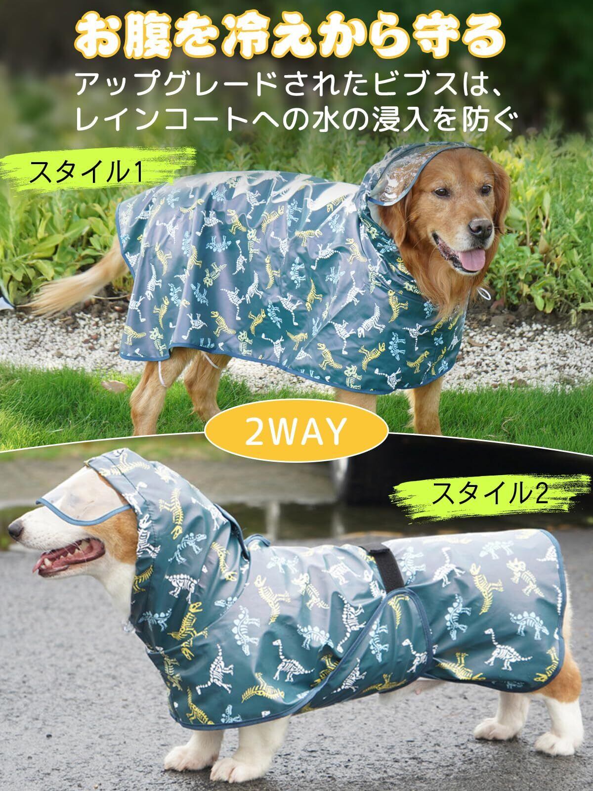 【実用性犬カッパ】犬用ポンチョ首部に隠蔽式リード穴装備、リード付いても、雨がレインコート内に入りません。雨が降っても、ペットが雨に濡れない。帽子付。通気性がいい。デザインは独特で、ひと目で愛犬を見つけられる。