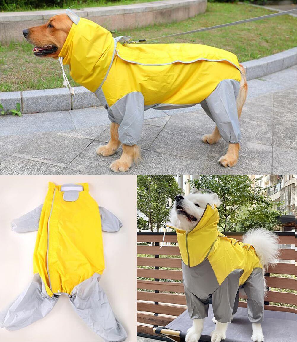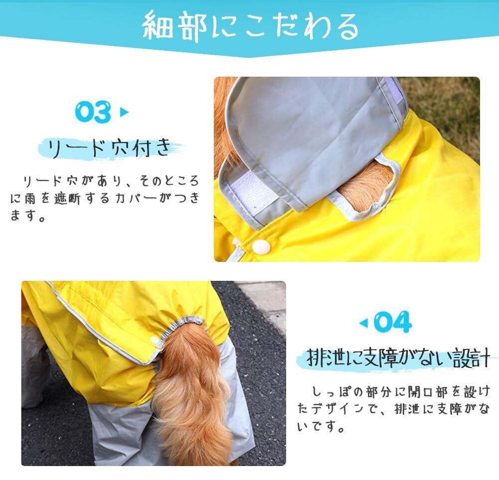 [Nyoniko(ニョニコ)] 犬レインコート ペットレインコート カッパ 中型犬 大型犬 小型犬 完全防水 防風 防塵 防雪 帽子付き リード穴あり 取り外し可能な帽子 帽子付き 軽量 着脱簡単 梅雨対策 耐久性 お出かけ お散歩(drt003-Yellow-26)