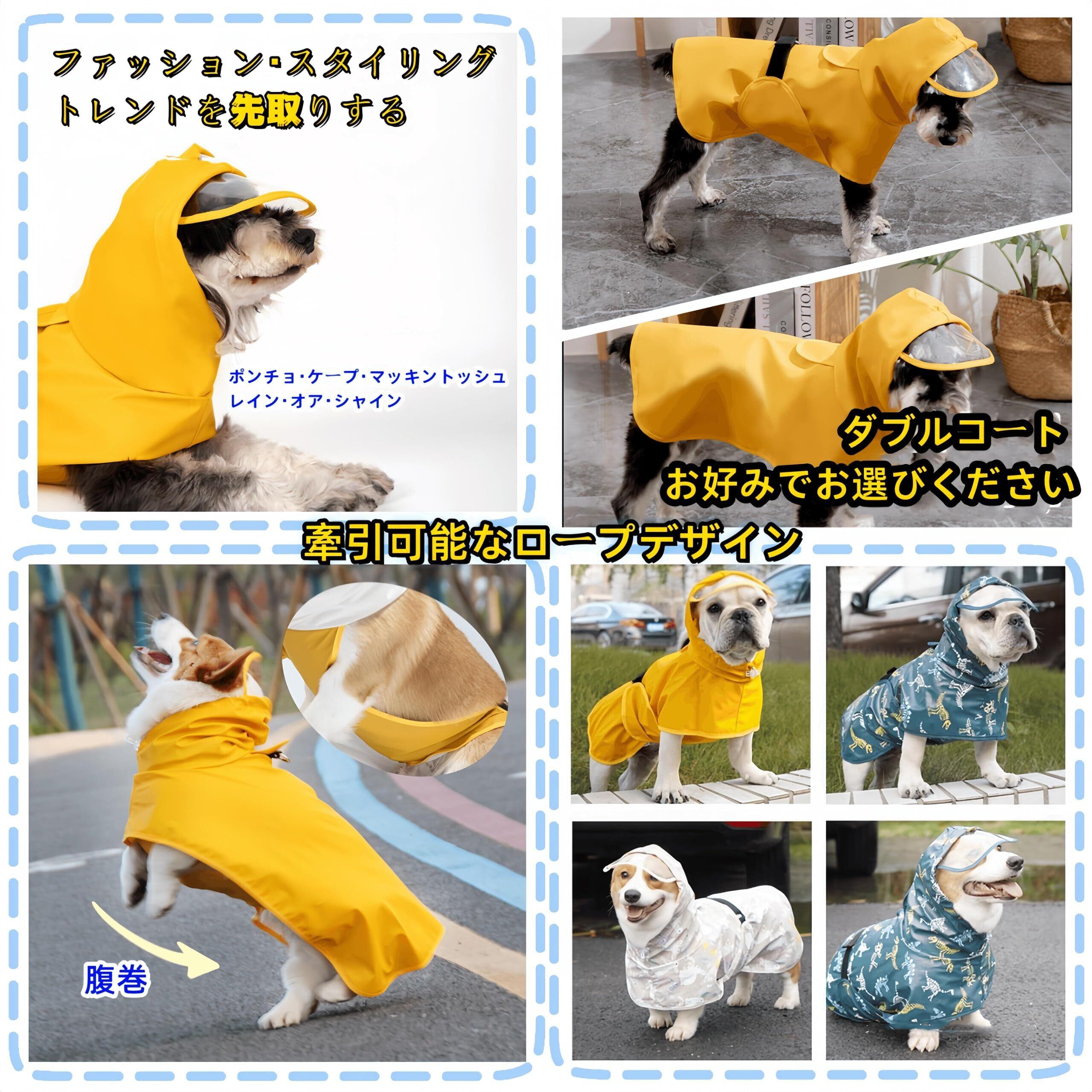 【実用的なデザイン】首部分には隠蔽式のリード穴が装備されており、リードをつけても雨がレインコート内に入りません。雨の日でも愛犬が濡れることなく、快適に過ごせます。フード付きで通気性も良く、独特なデザインがひと目で愛犬を見つけやすくします。