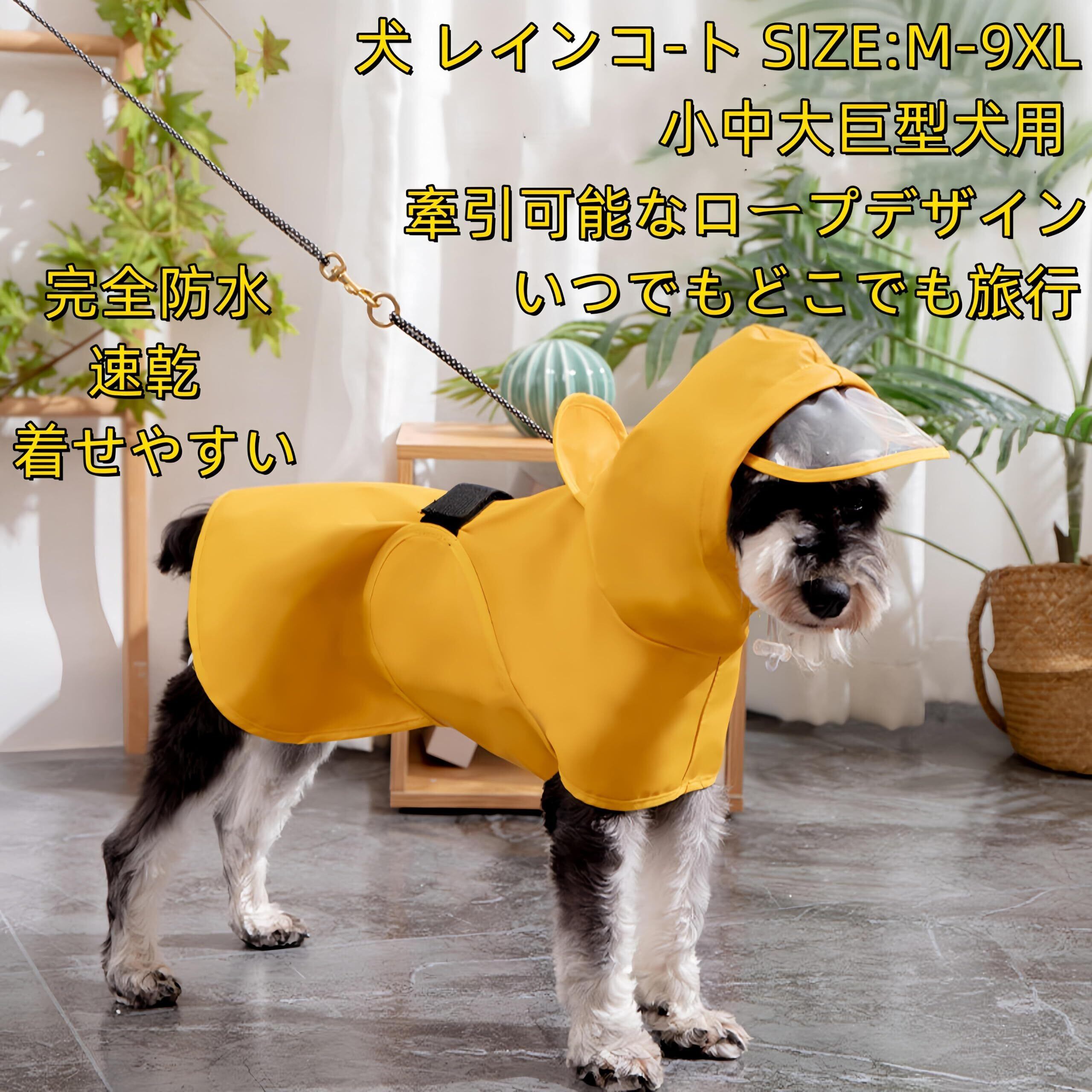 JOYFUSION 犬 レインコート 犬用傘 防水 着せやすい こーひ 完全防水 速乾ショール 梅雨対策 透明フード付きケープ 着脱簡単 防水 防雪 透湿 軽量 マジックテープ サイズ調整可能 小型犬 中型犬用 大型犬 防塵 梅雨対策 耐久性あり(イエロー 3XL(10-14KG))