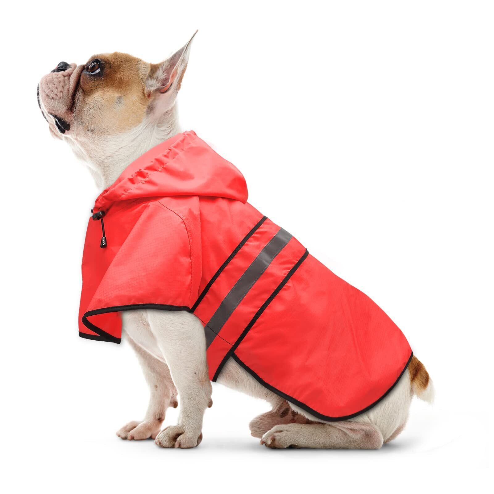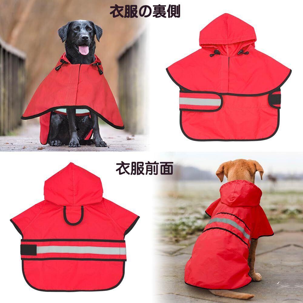 Candofly 犬 レインコート 防水 犬 カッパ 犬用レインコート フード付き 反射性 犬 服 調節可能なペットジャケット 犬の レインコート 梅雨対策 犬用レインジャケット 軽量ペットスリッカー フード ポンチョ小型・中型・大型犬用 (S, 赤)