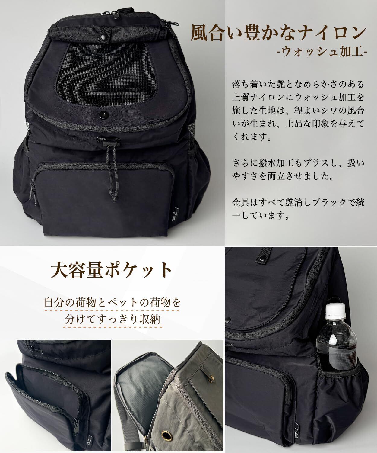 dot. ペット キャリー リュック キャリーバッグ ナイロン 小型犬 犬 猫 抱っこ バックパック リュックサック ペットキャリー スタイリッシュ 犬用 猫用 日本ブランド (ブラック, M)