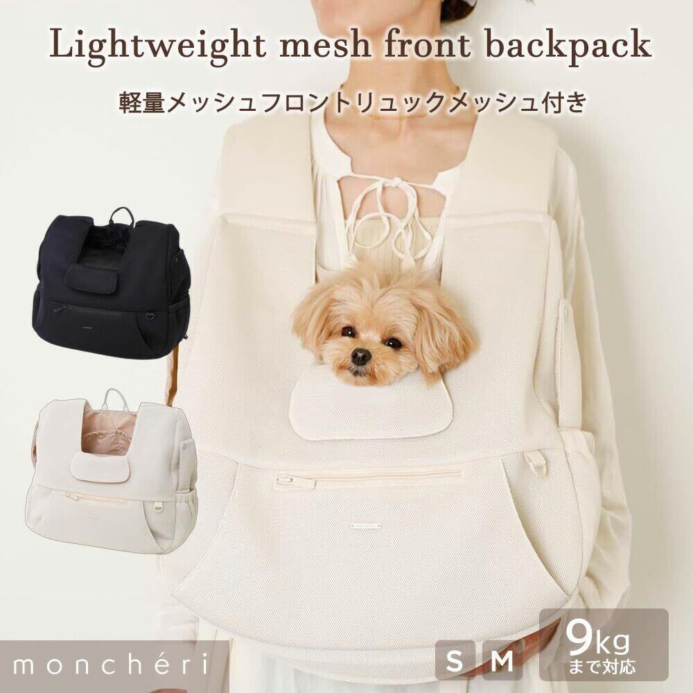 monchéri モンシェリ [軽量メッシュフロントリュックメッシュ付き] 犬 キャリーバッグ リュック (ベージュ/M) かわいい おしゃれ 人気 ブランド トイプードル チワワ 小型犬