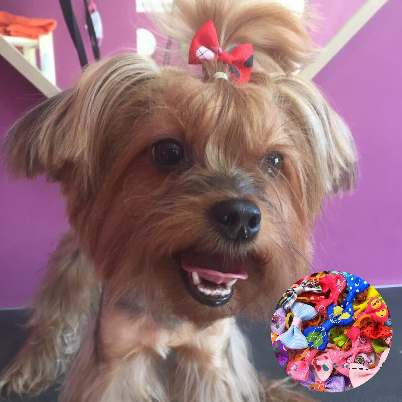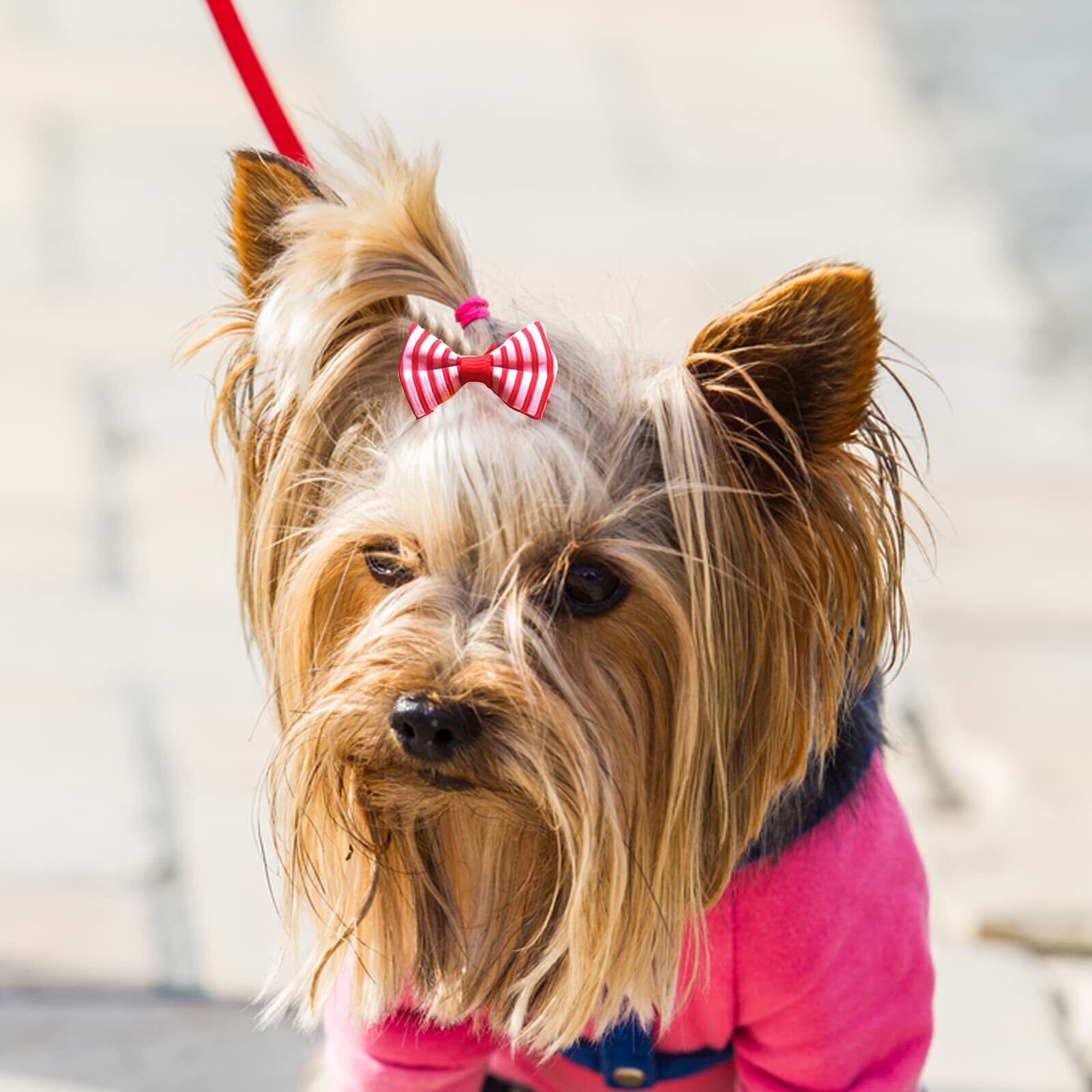 【素材】ペットのヘアゴムは高品質のポリエステルとかわいいリボン付きのゴムバンドで作られています。 弾性バンドは弾力性があり、耐久性があり、柔らかくて快適な着用感で、髪を傷つけません。 長期間使用できます。