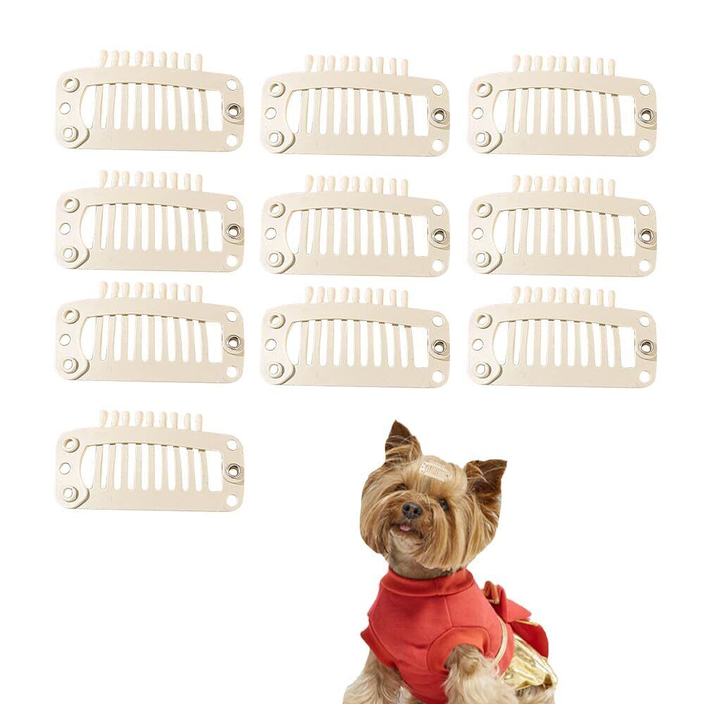 全犬種対応 10個セット 犬用ヘアピン 飾り付き ハンドメイド素材 すべり止め ぱっちんコーム付き DIY手芸用アクセサリー 軽量 ウィッグピン 小型・超小型犬用 (10個のオフホワイト色の接着剤なしカバー規格: 3.2cm)