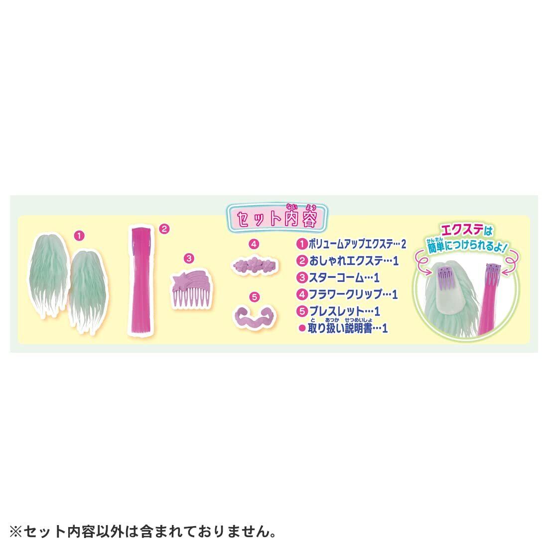【セット内容】ボリュームアップエクステ(2),おしゃれエクステ(1),フラワークリップ(1),スターコーム(1),ブレスレット(1),取り扱い説明書(1),