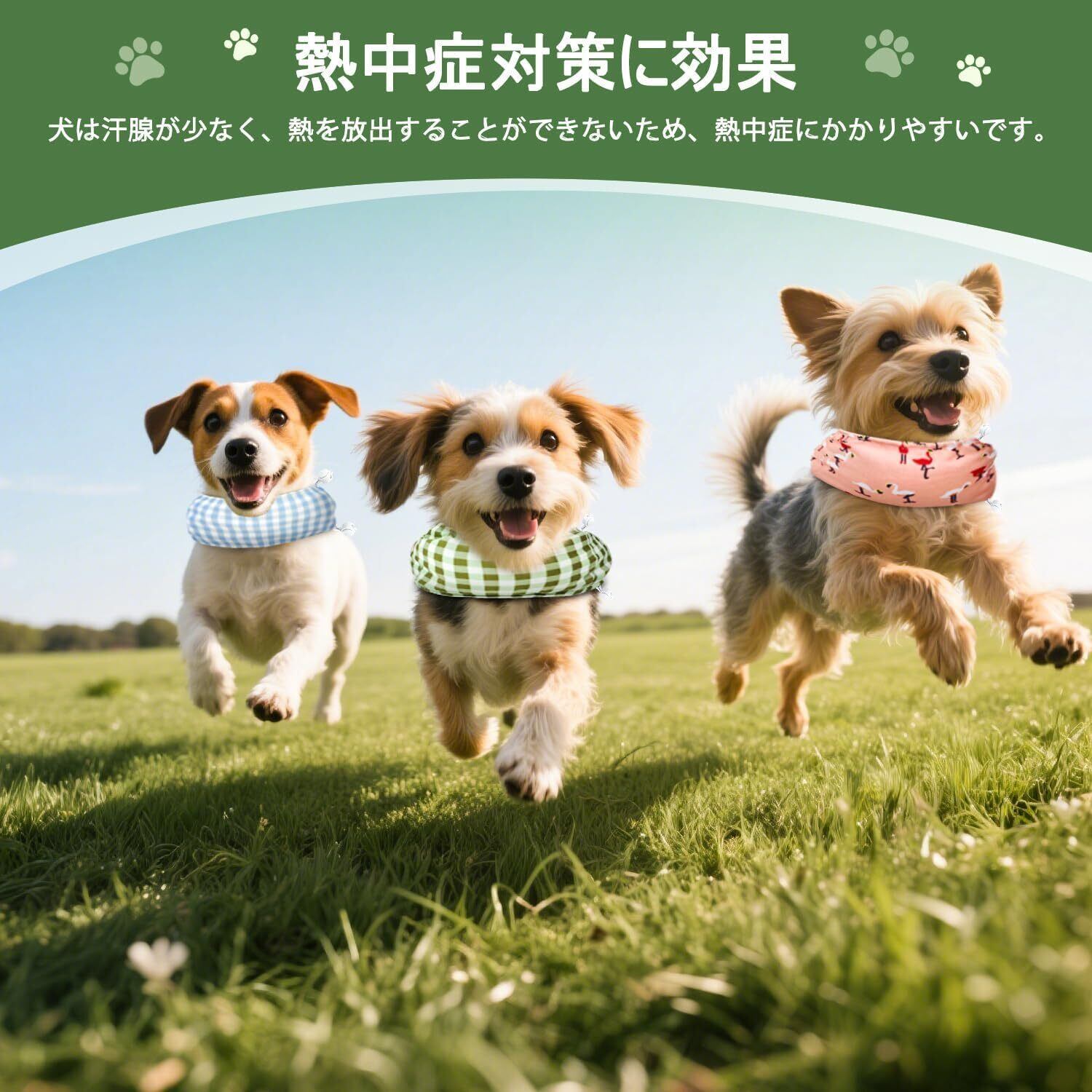 【暑さ対策グッズ】愛犬の熱中症を予防する「クールネック」を使用しましょう。熱放出できない犬にとって、外出時や長時間の散歩など、健康を守るためには必需品です。