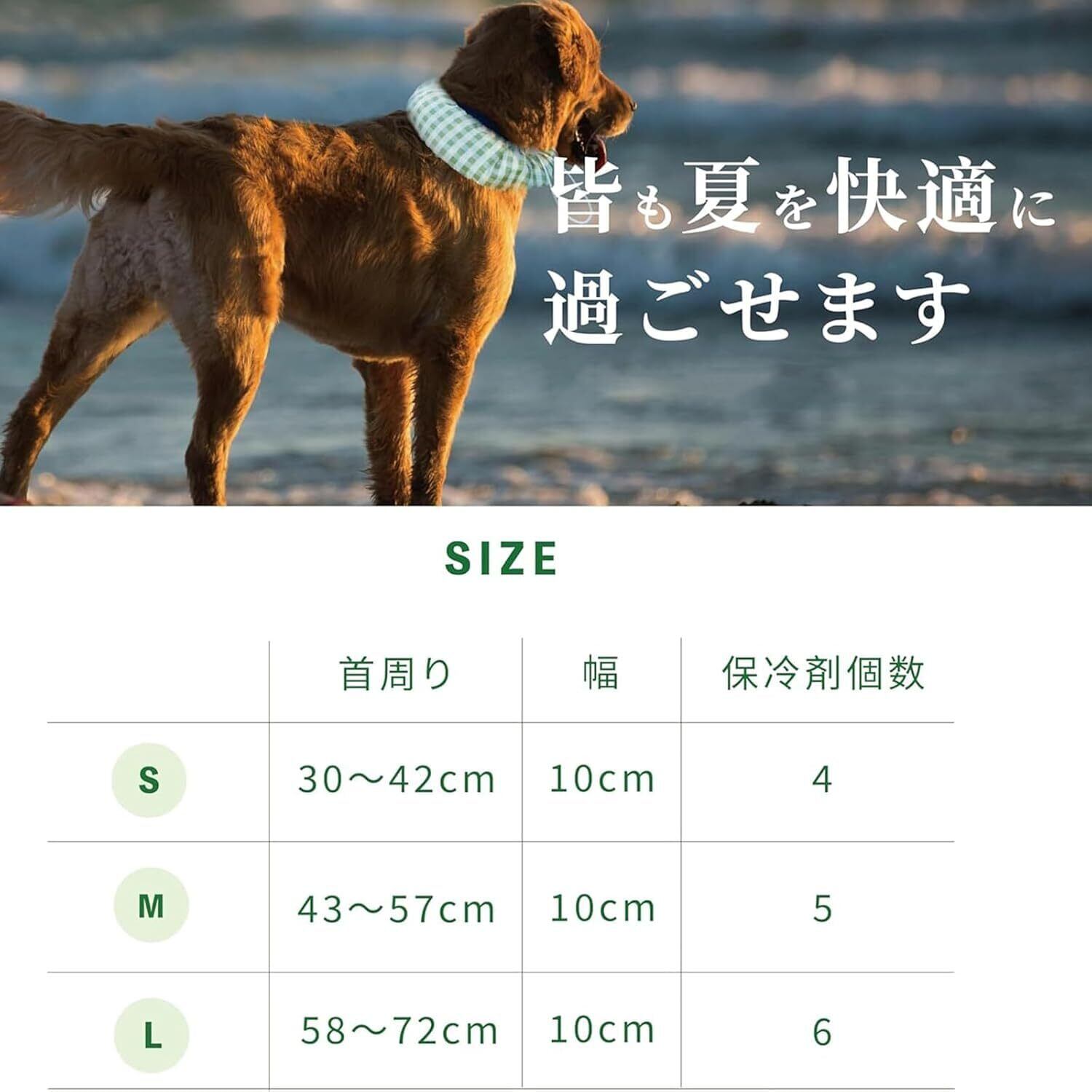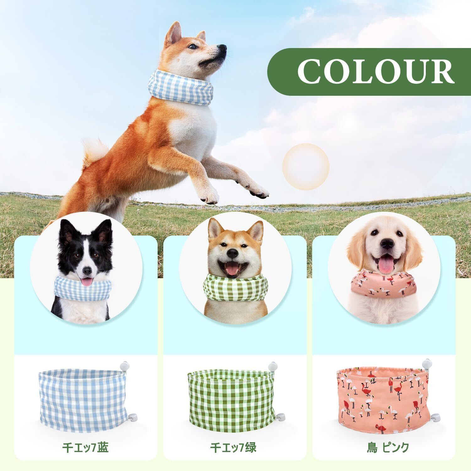 【サイズ調節可能】クールネックは、小型犬から大型犬まで、幅広いサイズが揃っているので、愛犬に合ったサイズを選ぶことができます。