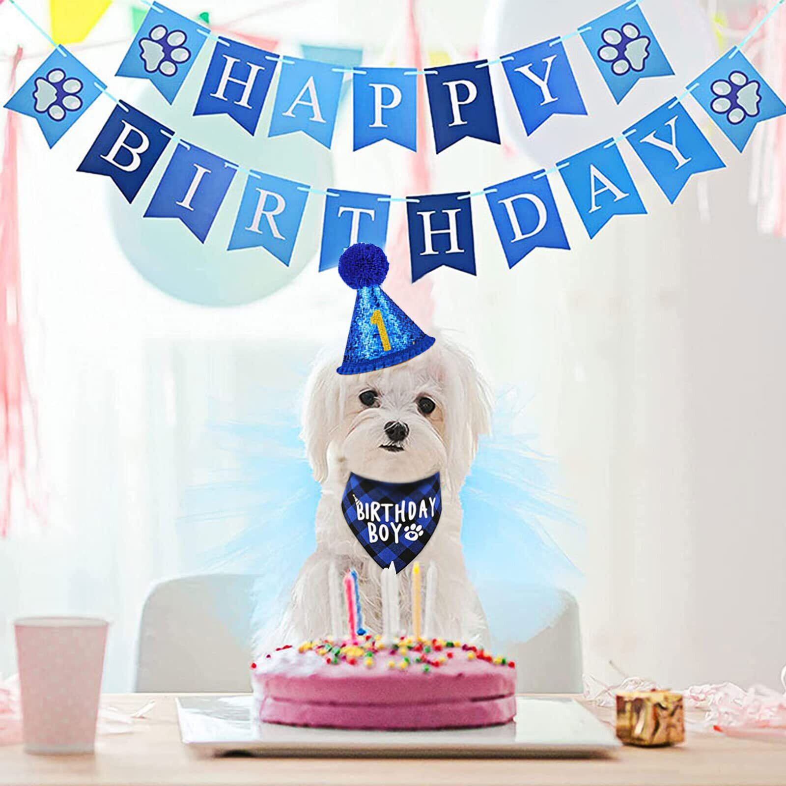 【数量限定】犬 バースデー 誕生日 スタイ ペット 飾り付け 猫 誕生日帽子 バンダナ 風船 バナー ペットグッズ おしゃれ 記念日 メモリアル パーティー飾り (ブルー) | wakuwakuland
