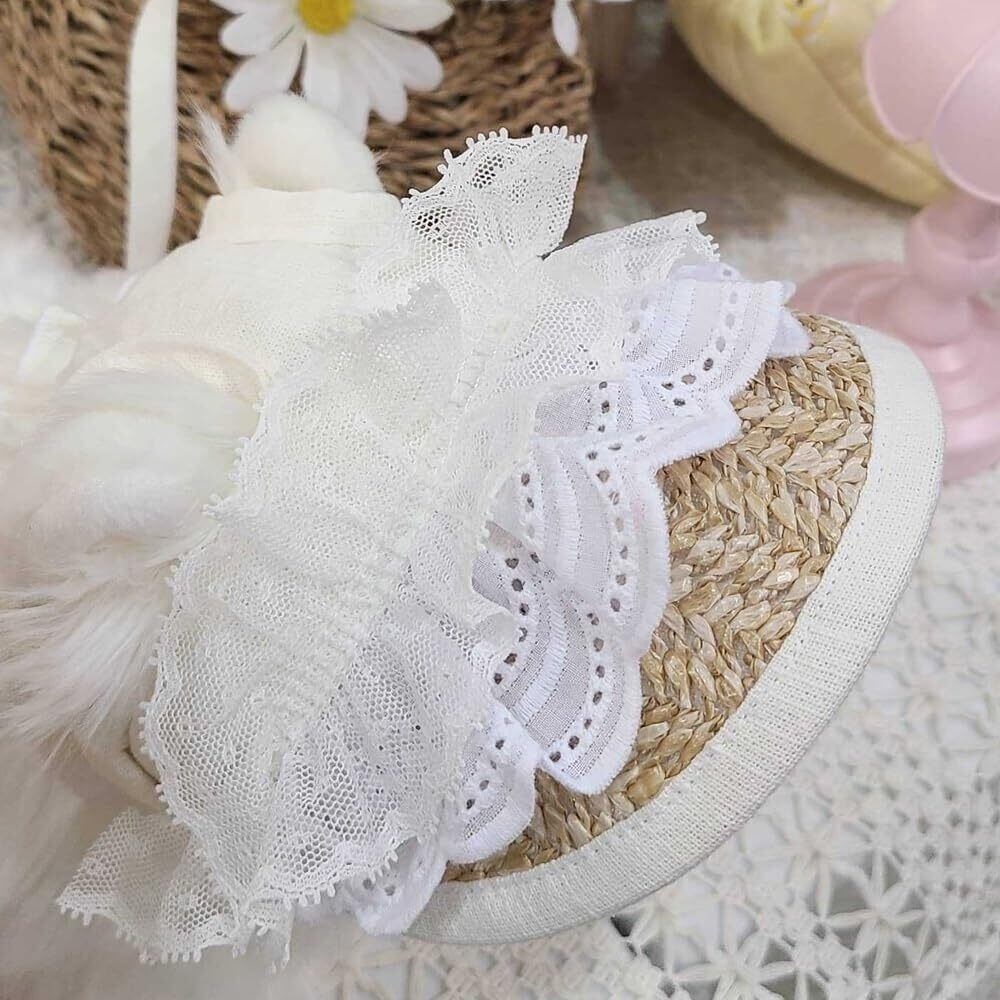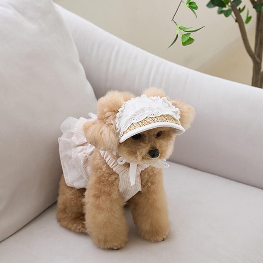 犬用帽子 ペット麦わら帽子 小型犬 中型犬 猫 ハット ペットキャップ ビーチ帽子 可愛い レース 通気 耳部穴洞設計 熱中症対策 日焼け防止 日除け アウトドア 散歩 お出かけ用品 (S)