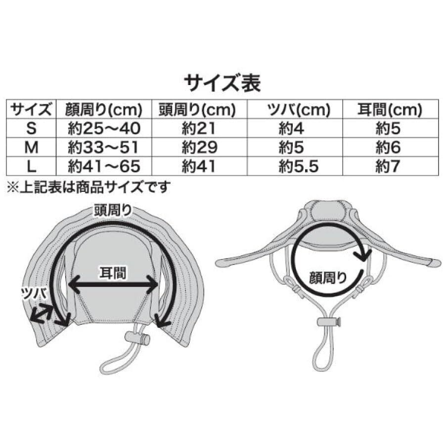 ■商品実寸サイズ:Sサイズ:顔回り 約25-40cm 頭回り 約21cm ツバ 約4㎝ 耳間 約5cm / Mサイズ:顔回り 約33-51cm 頭回り 約29cm ツバ 約5㎝ 耳間 約6cm / Lサイズ:顔回り 約41-65cm 頭回り 約41cm ツバ 約5.5㎝ 耳間 約7cm ※耳間・・通常の状態での頭頂部の耳の根本(付け根)の間の距離を測定します。 ※毛の多めのワンちゃんや長毛犬種のワンちゃんはワンサイズ大きめのサイズをお選び頂くことをおすすめします。