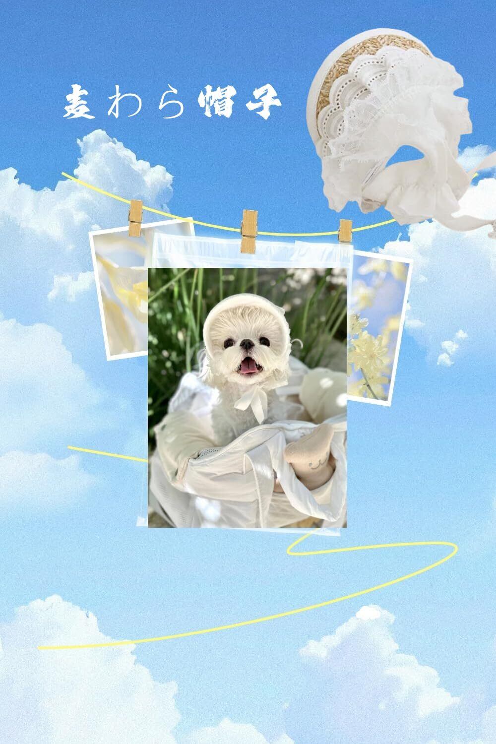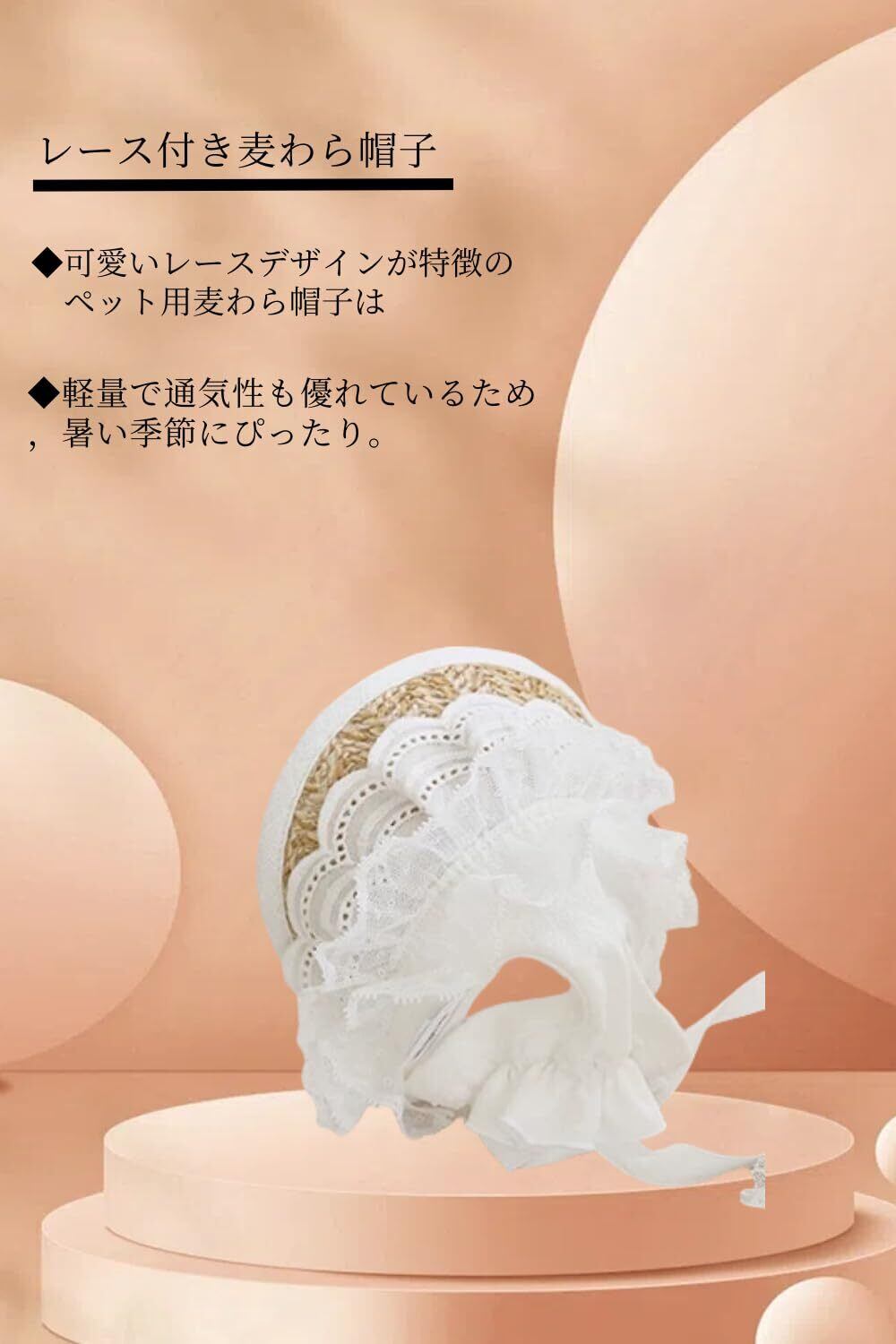 【レース付き麦わら帽子】可愛いレースデザインが特徴のペット用麦わら帽子は、暑い季節にぴったり。日差しから愛犬の顔や頭を守ることができます。夏の日除け帽子として大活躍。