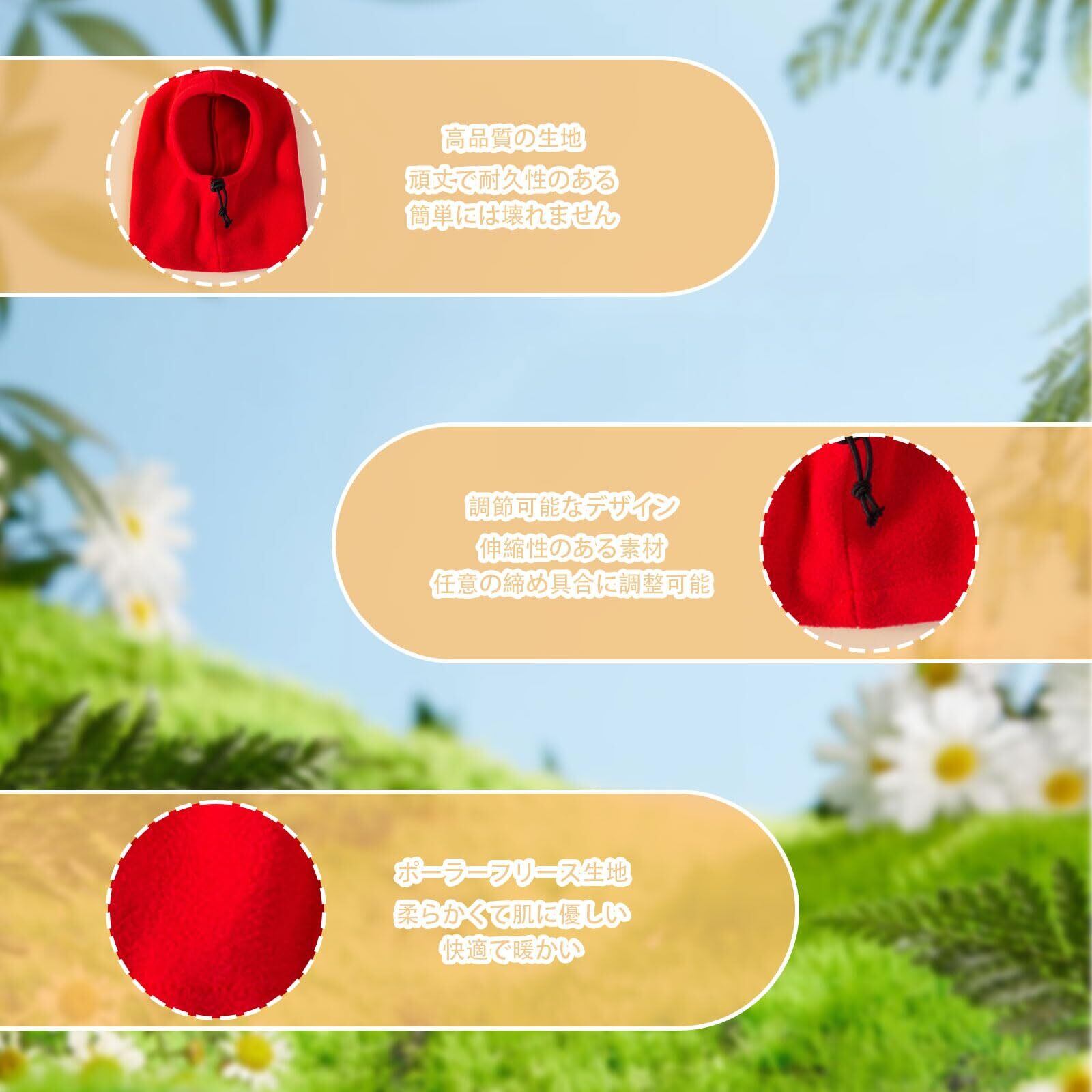 【デザイン】首、耳、頭を覆う一体型のフルラップデザインのペット用帽子です。ペットの首や頭を温め、冷たい風からペットを守ることができます。寒い季節でも愛犬は快適に過ごします。