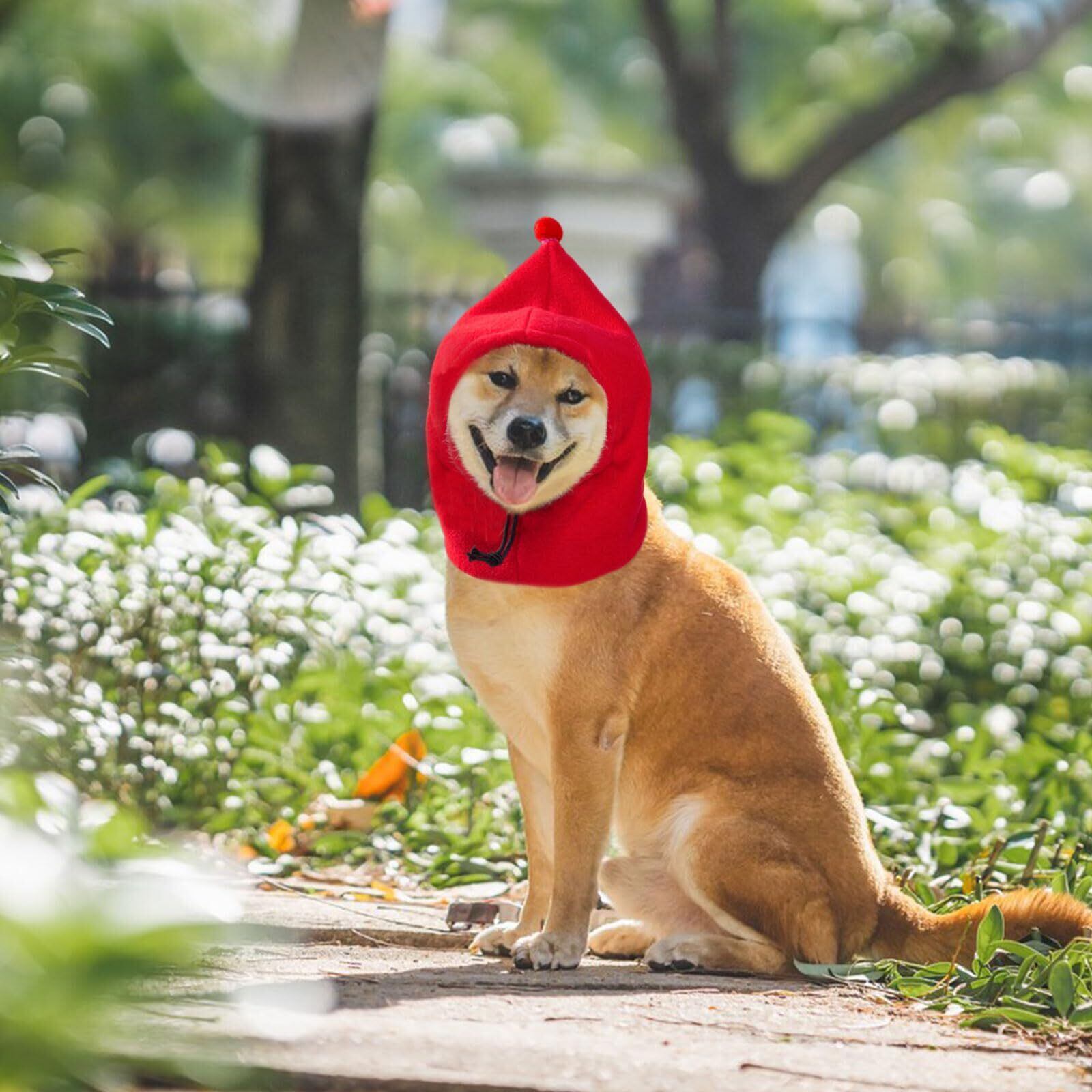 【特価セール】犬 スヌード 犬用 帽子 暖かい 柔らかい ポンポン付き ペット帽子 犬 猫 冬 防寒 バンダナ スカーフ ネックスカーフ 犬耳カバー ハット 可愛い おしゃれ 被り物 ドッグウェア コスチューム コスプレ お出かけ 寒さ対策 不安解消 (レッド, S) | wakuwakuland