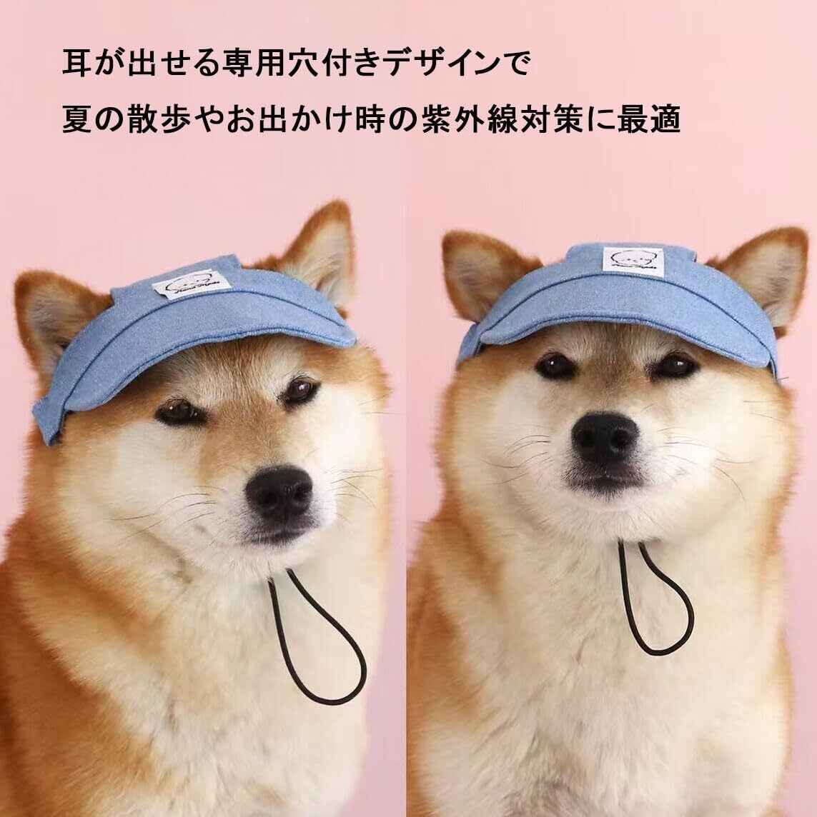 犬用野球帽スタイルのUVカットハット:耳が出せる専用穴付きデザインで、夏の散歩やお出かけ時の紫外線対策に最適。小中型犬対応の2サイズ展開で愛犬にぴったりフィットします。