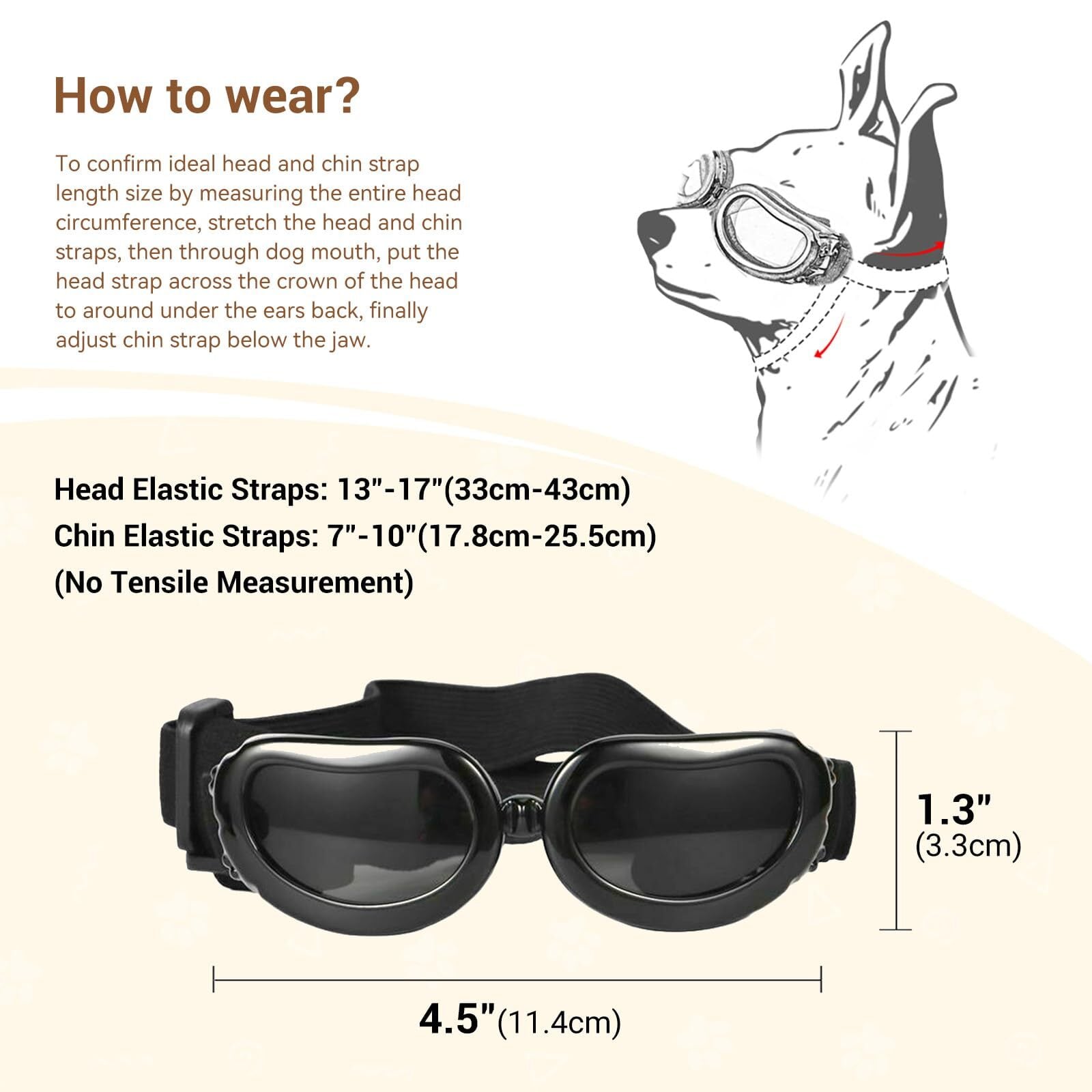 小型犬用 UV サングラスは、車内運転中に窓から犬の頭を突き出すのに最適です。また、バイク乗り、フォトブース、旅行、日常使いなどのアウトドア活動にも活躍します。 ホリデーハロウィン、クリスマス、新年のギフトにも最適です。