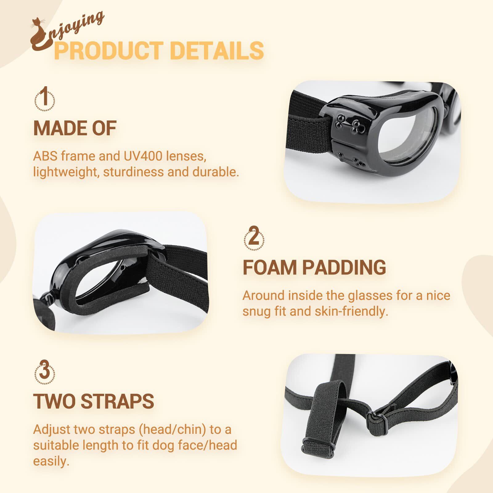 Enjoying Dog サングラス 小型犬 UV保護 ドッグゴーグル アイウェア 防風 曇り止め ドッグシェード 小型犬用 約5ポンド以上 クリア
