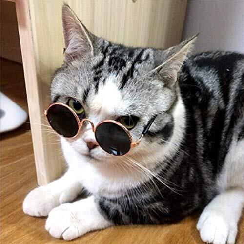 Kingsie 猫 サングラス メガネ 小型犬 眼鏡 可愛い かっこいい 日焼け対策 紫外線対策 ペット アクセサリー 写真撮影 (ブラック)