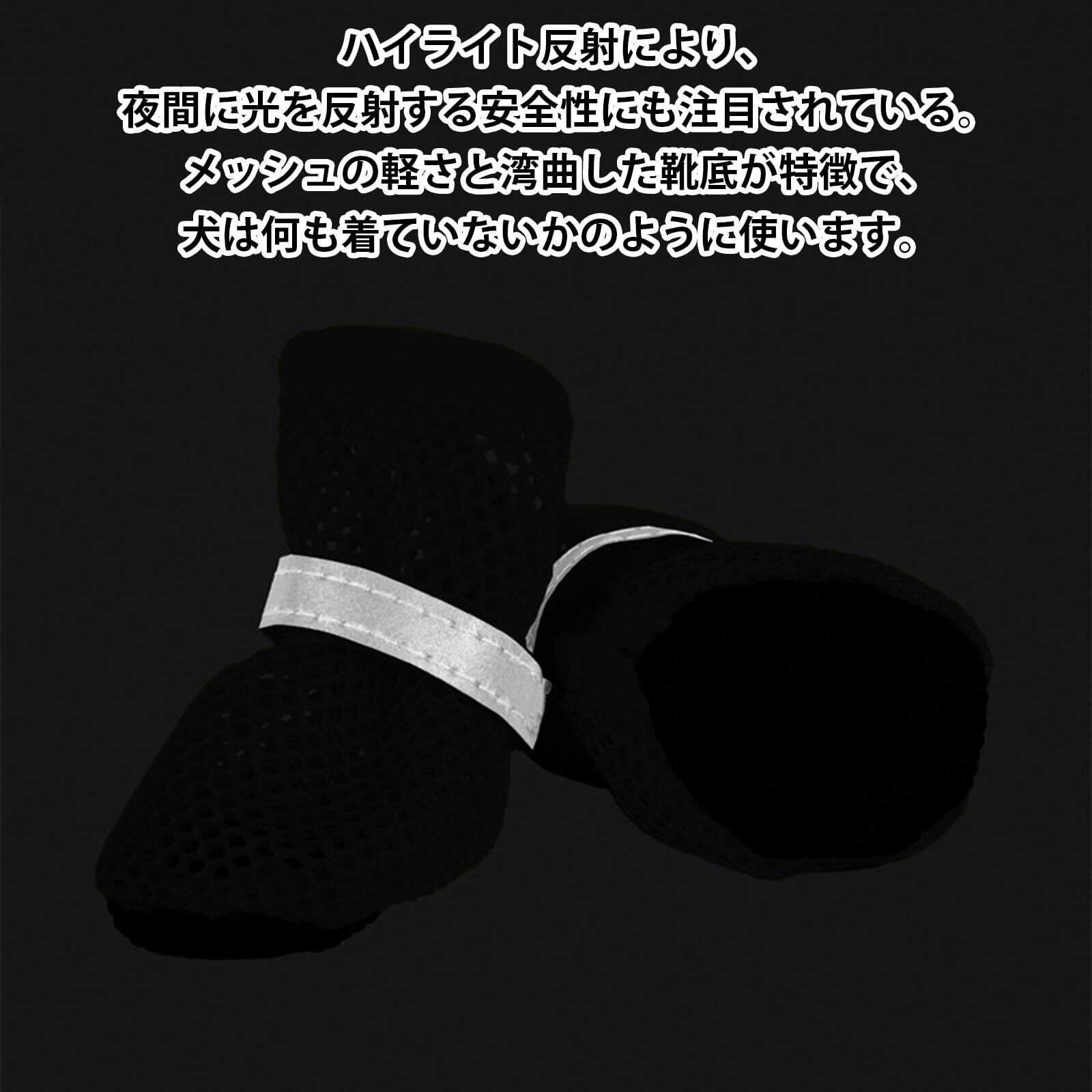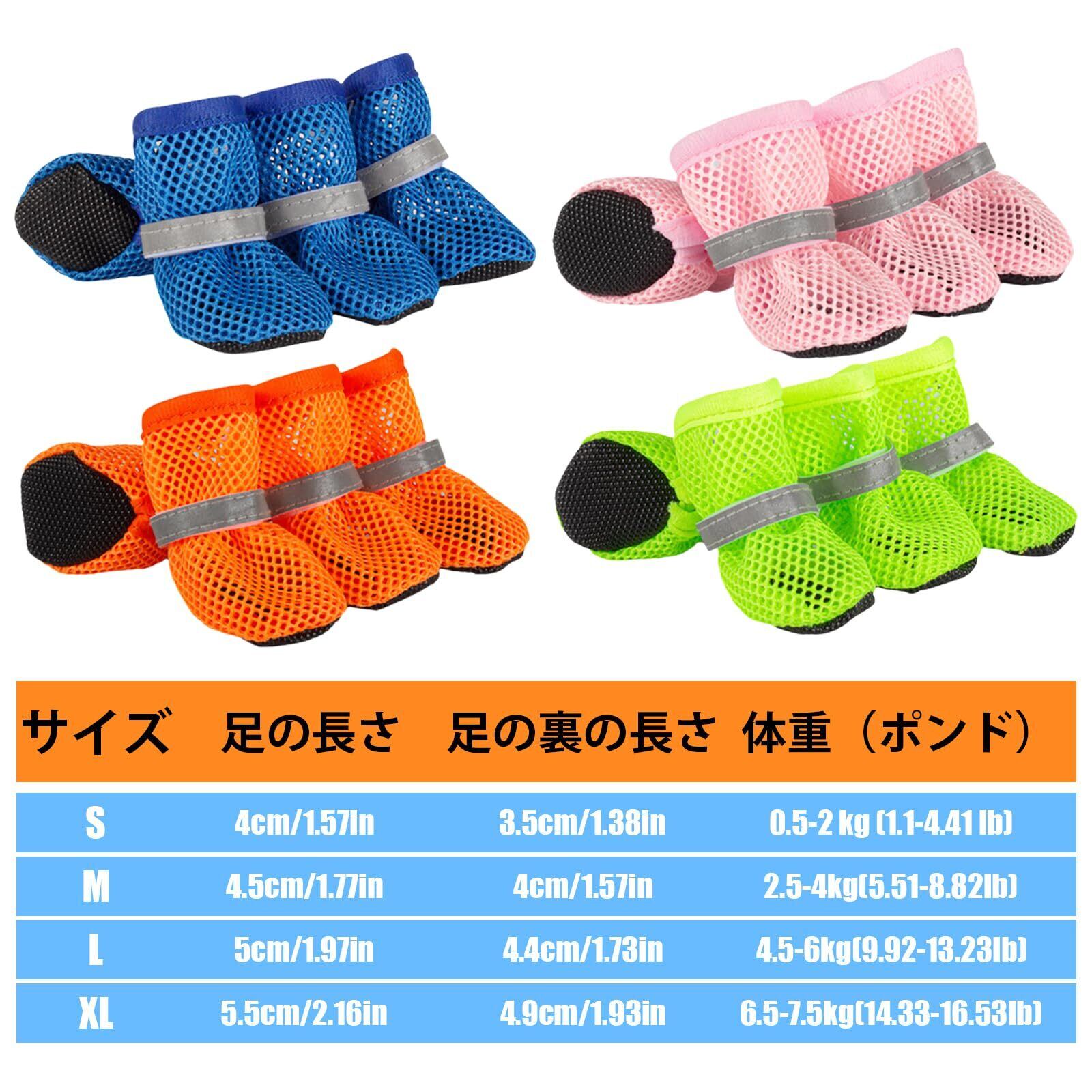 犬 靴 メッシュ 夏 犬 足カバー 通気性 滑り止め 脱げない 小型犬 中型犬 肉球保護 犬のくつ 散歩 犬 猫 夜間反射テープ付き 犬用シューズ 汚れ防止 アウトド アペット用 (ピンク, M)