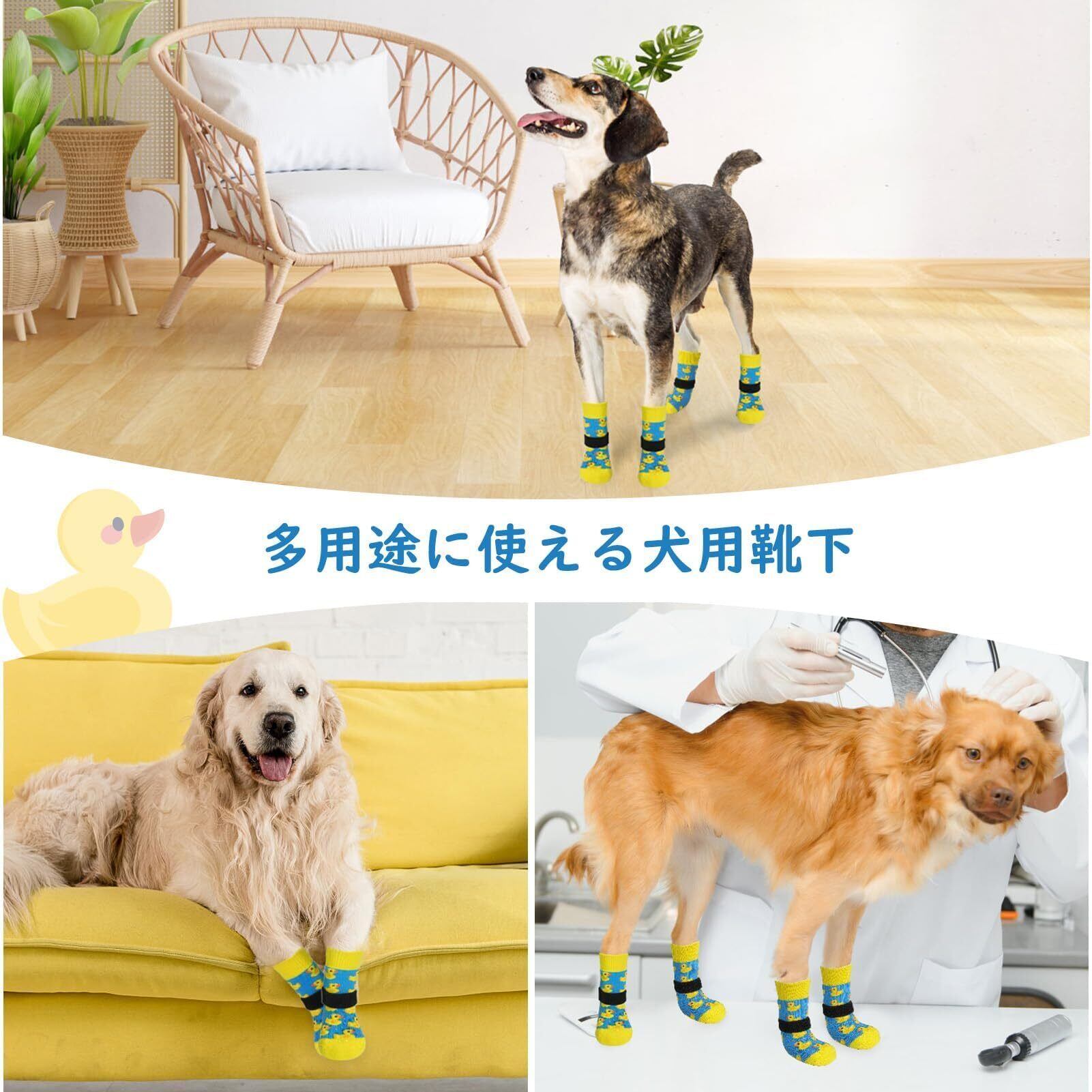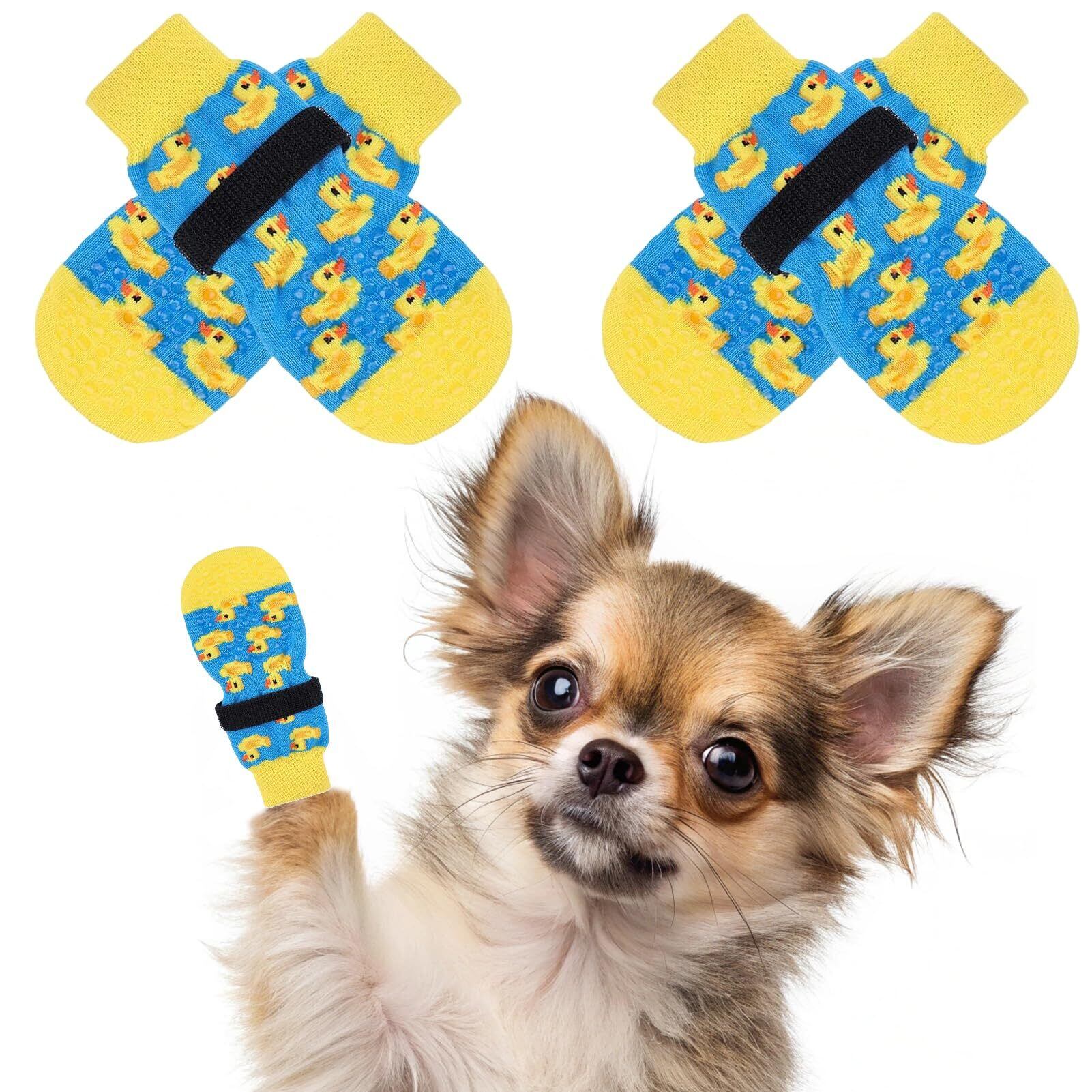 BINGPET 犬 靴下 ペット用靴下 滑り止め 4個セット 肉球保護 犬用靴下 防滑ソックス 柔らかい 脱げない かわいい 転倒防止 室内履き 通気性 老犬 介護サポート 足舐め防止 かわいい おしゃれ 小型犬 中型犬 大型犬 犬靴下 (ダック,XS)