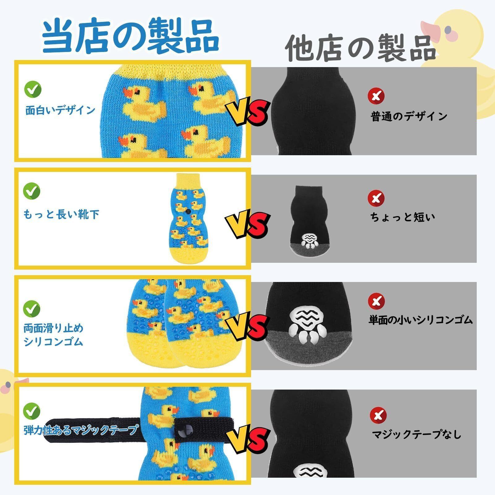 【数量限定】BINGPET 犬 靴下 ペット用靴下 滑り止め 4個セット 肉球保護 犬用靴下 防滑ソックス 柔らかい 脱げない かわいい 転倒防止 室内履き 通気性 老犬 介護サポート 足舐め防止 かわいい おしゃれ 小型犬 中型犬 大型犬 犬靴下 (ダック,XS) | wakuwakuland