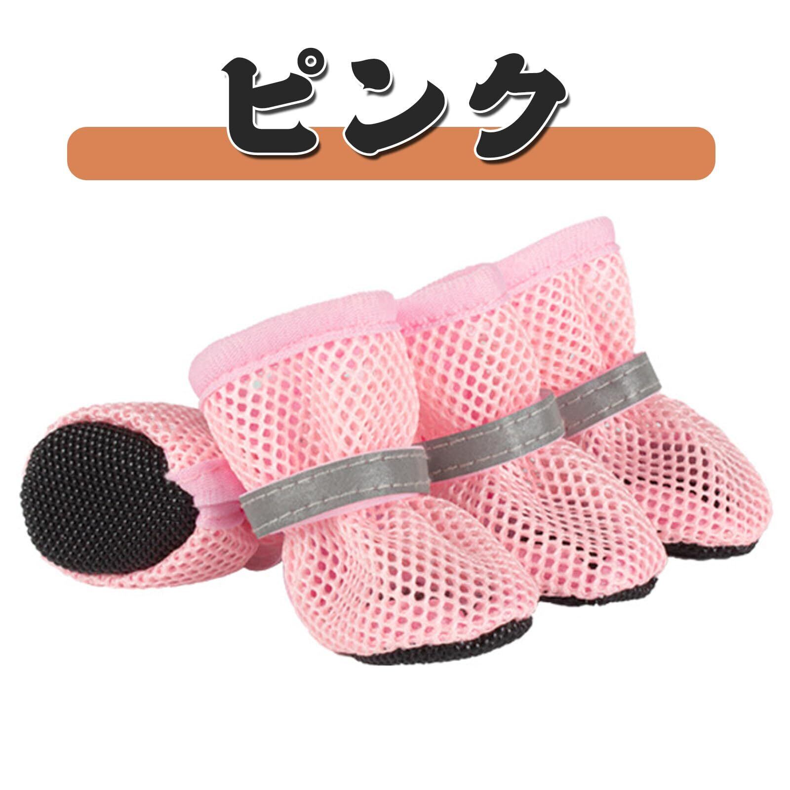 犬 靴 メッシュ 犬の靴 夏用 犬用靴 小型犬 ドッグブーツ 中型犬 ドッグシューズ 大型犬 通気性 犬用ブーツ 防水 脱げにくい 犬用シューズ 滑り止め 肉球保護 犬のくつ 汚れ防止 夜間反射テープ付き ドッグくつ 介護 軽量 お散歩 梅雨対策 ペット用靴 (ピンク,S)