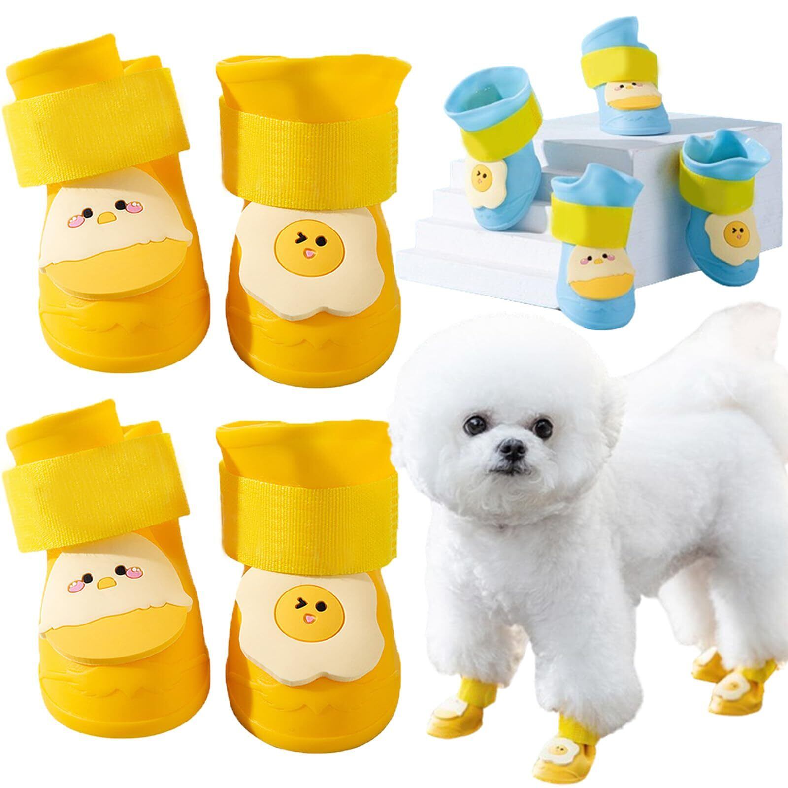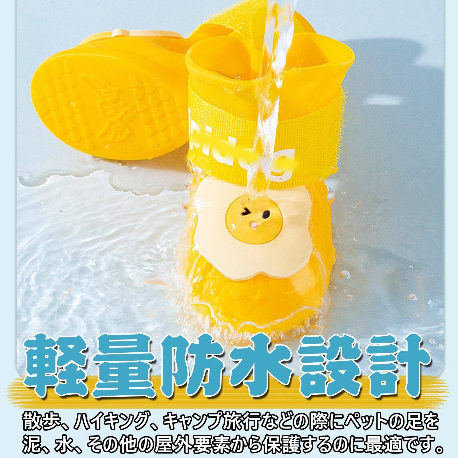 犬の靴 シリコン 犬 靴 雨 ドッグブーツ 防水 犬用レインブーツ 犬用靴 小型犬 軽量 柔らかい 犬用シューズ 中型犬 雨の日 靴 肉球保護 滑り止め 汚れ防止 通気性 ドッグシューズ 4個入り ドッグくつ 愛犬のお散歩用 介護 梅雨対策 ペット用靴 (イエロー,L)