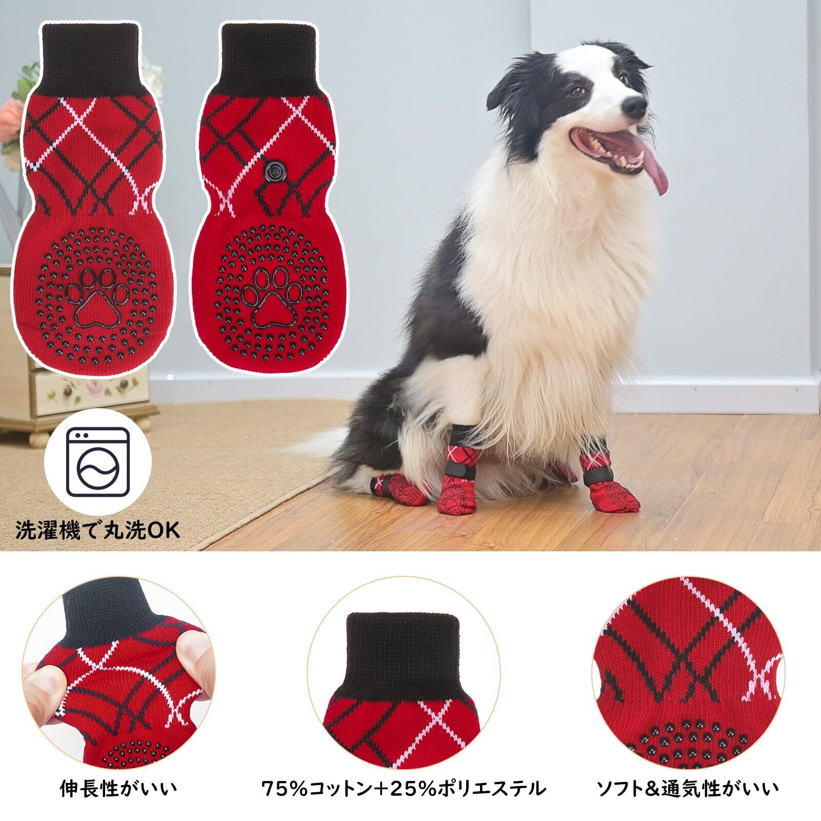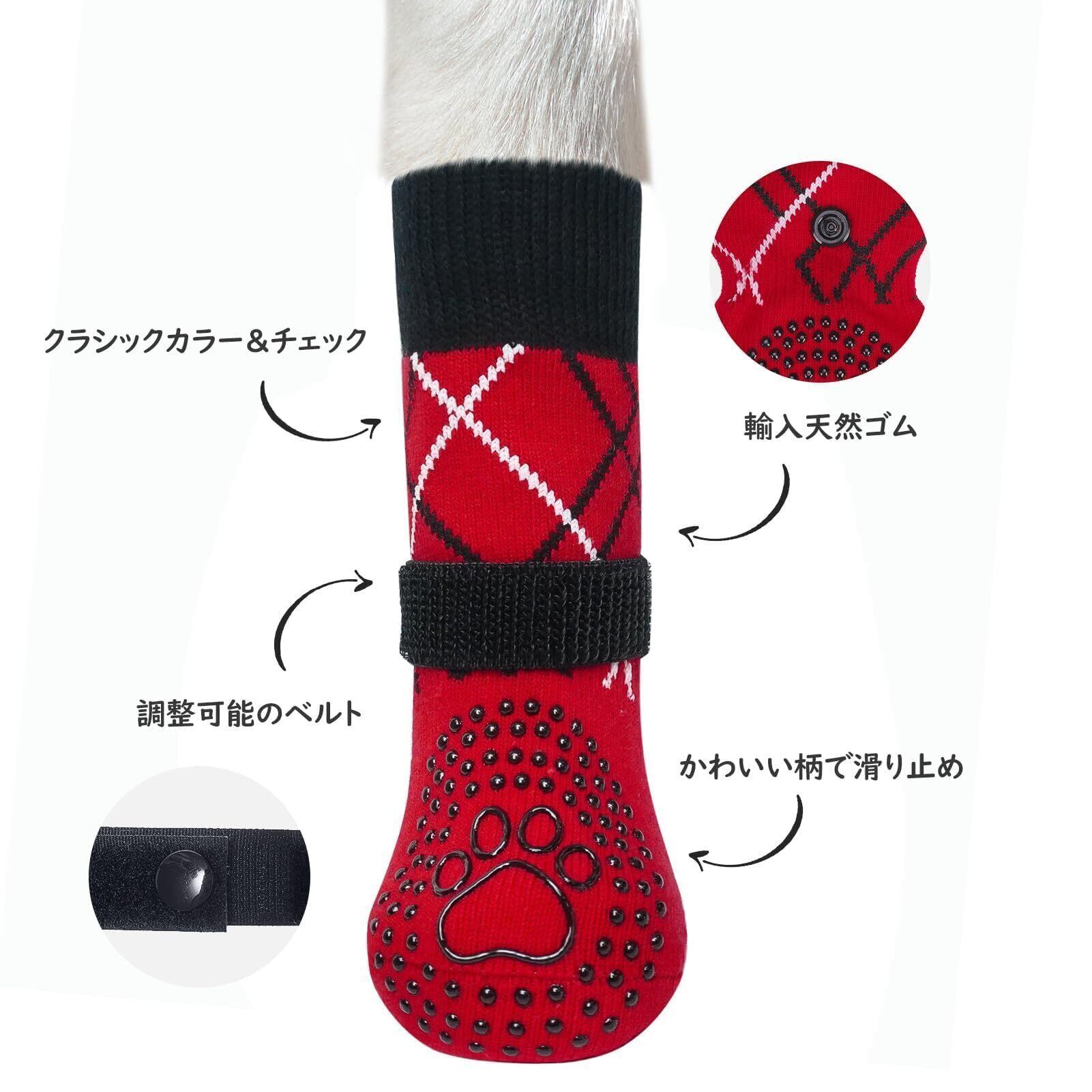 【新春セール】BINGPET 犬 靴下 犬用靴下 滑り止め 足保護 6個セット 肉球保護 犬の靴下 柔らかい 脱げない ペットソックス かわいい犬の足跡 防寒 転倒防止 秋冬 屋内用 通気性 介護 老犬 サポート 足舐め防止 かわいい おしゃれ 小型犬 中型犬 大型犬 シニア犬用 (アカ、XL) | wakuwakuland