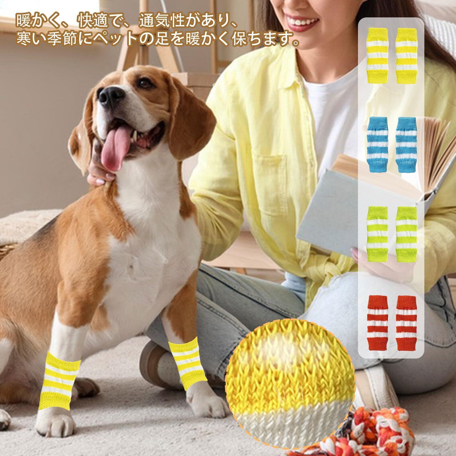【2022最新】犬 レッグウォーマー 4個 猫 犬用 レッグソックス 柔らかい ペットソックス 関節プロテクター 膝サポーター けが予防 可愛い ストライプ 防寒 汚れ防止 お散歩用 室内用 ペット用品 (ブルー, L 3.5-7kg) | wakuwakuland